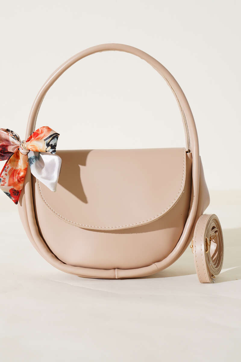 Şeritli Ayıcık Aksesuarlı Omuz Çantası Taba