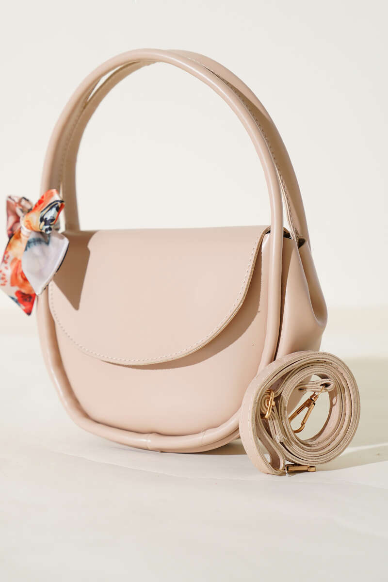 Uzun Kulplu Fermuarlı Rugan Çanta Beyaz