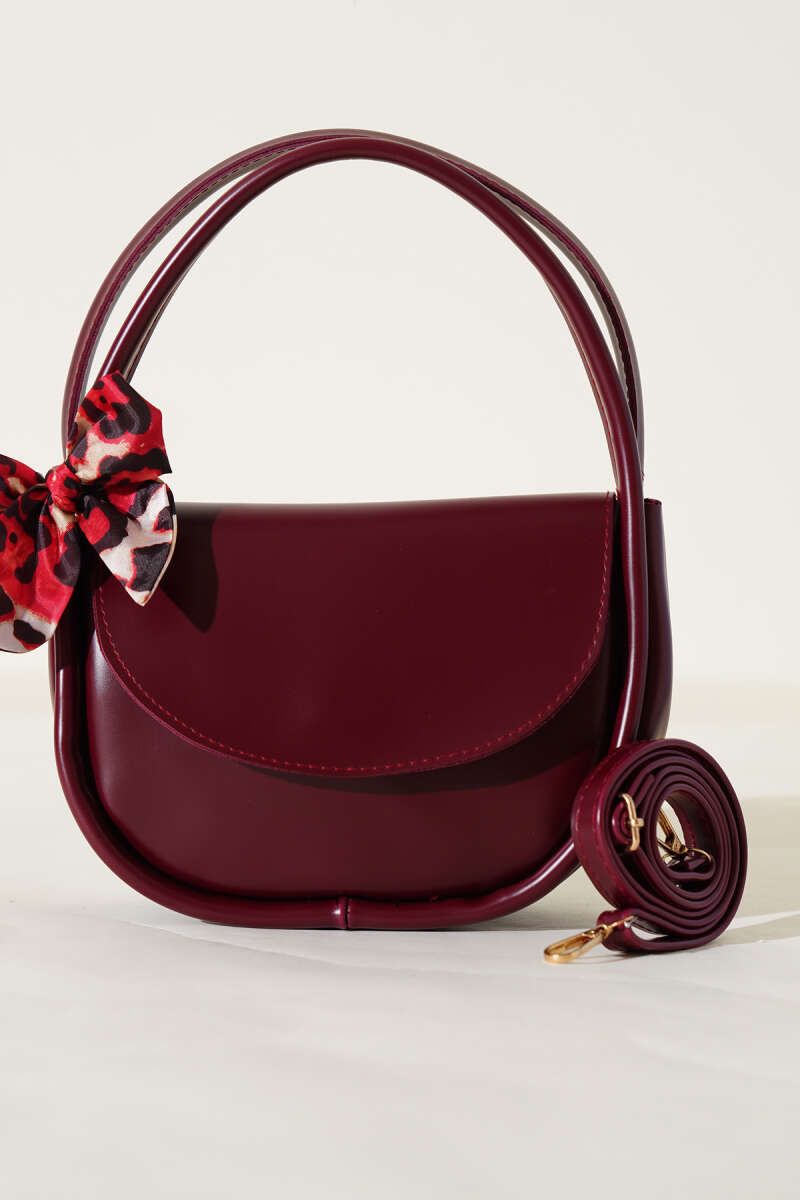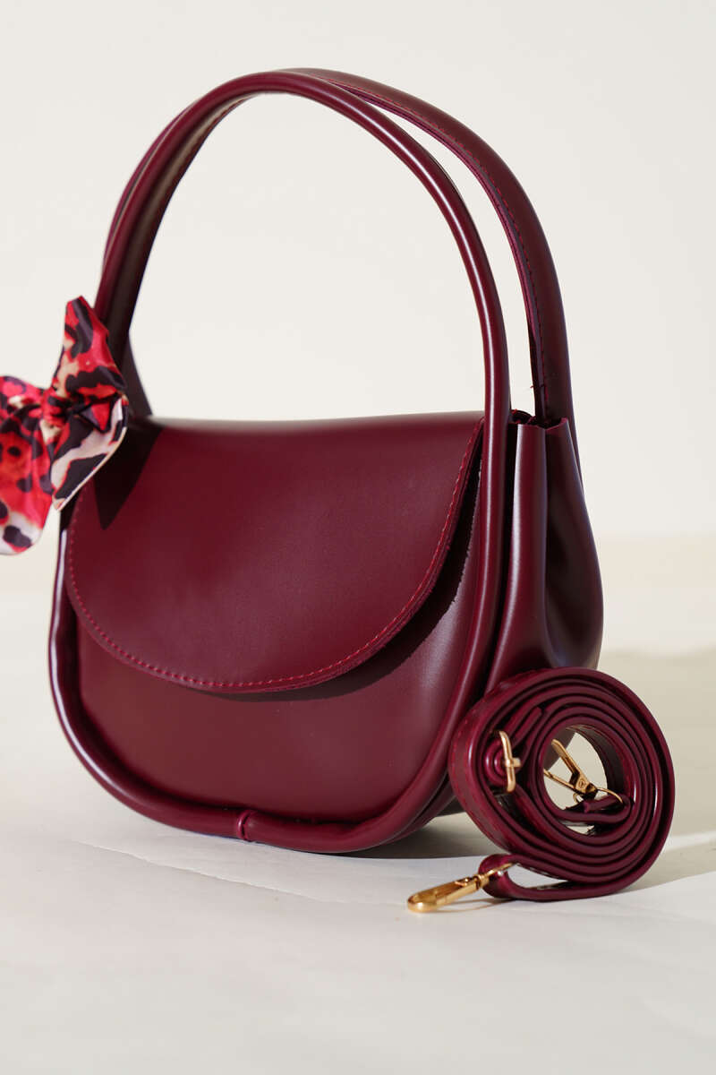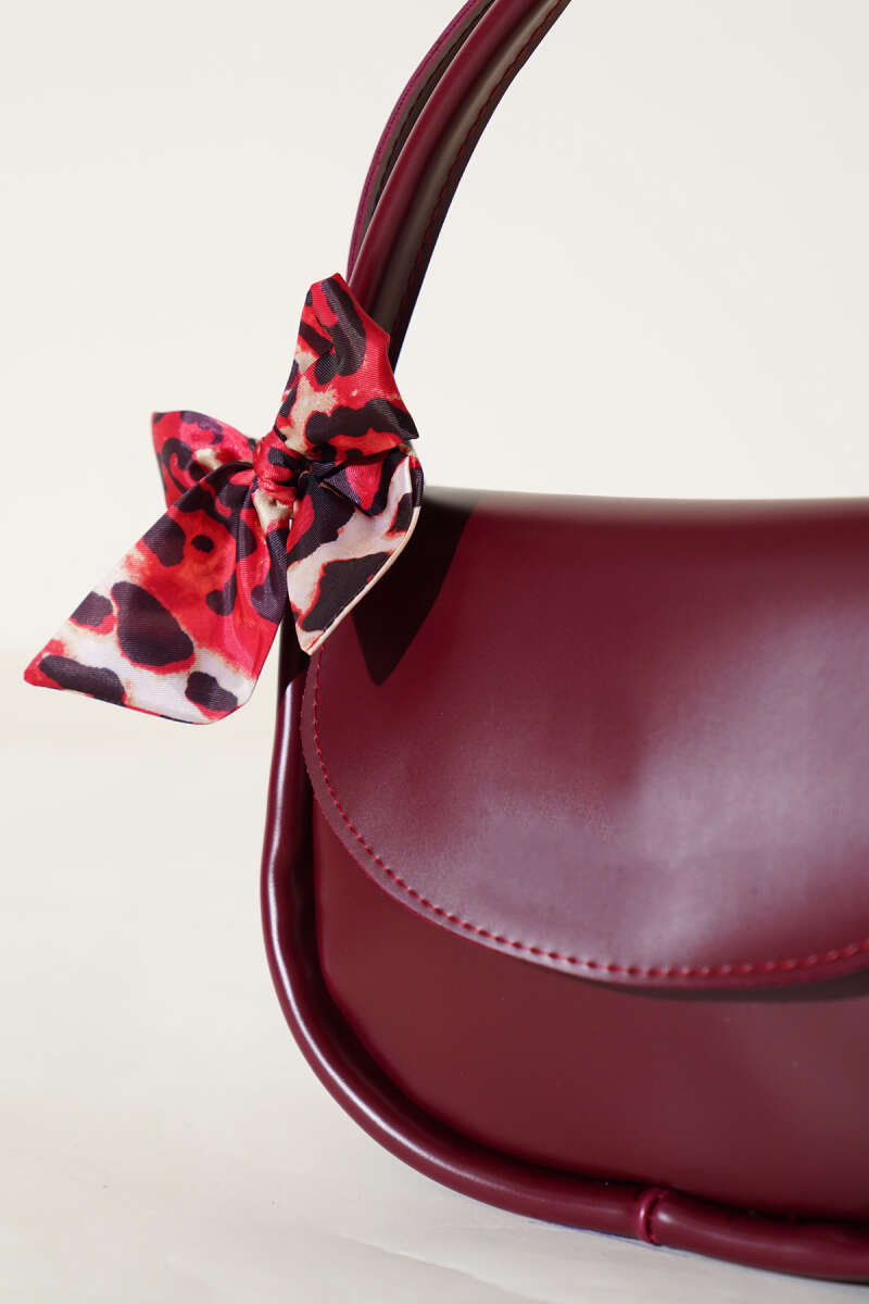 Fularlı Oval Kesim Çanta Kırmızı
