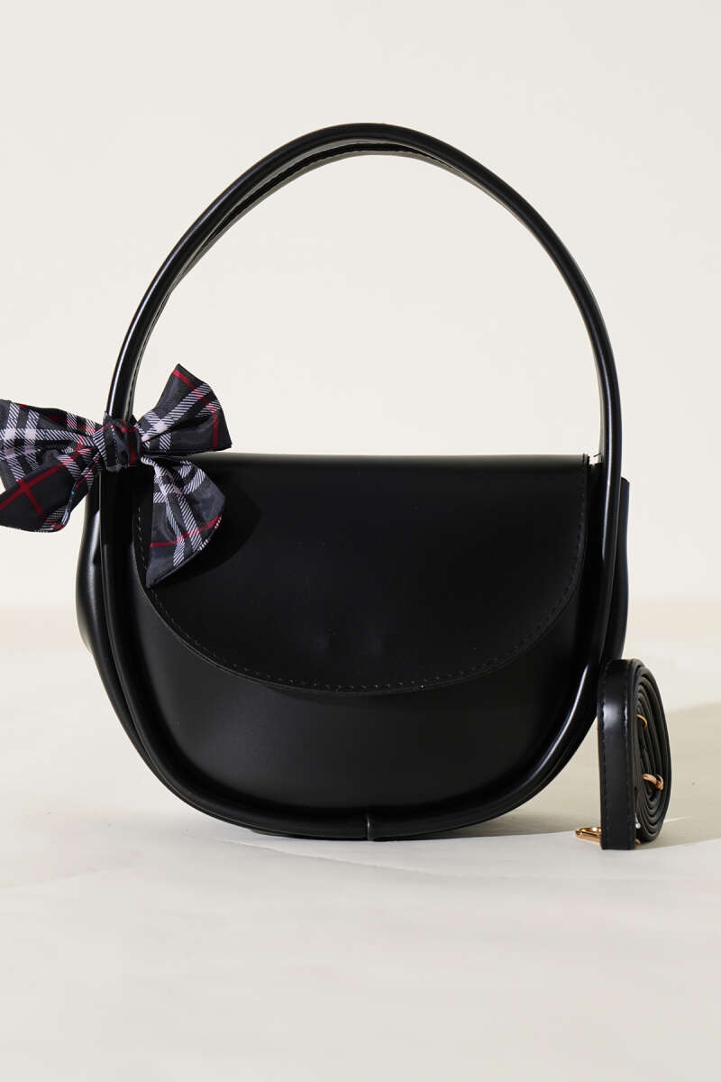 Fularlı Mıknatıslı Oval Çanta Beyaz