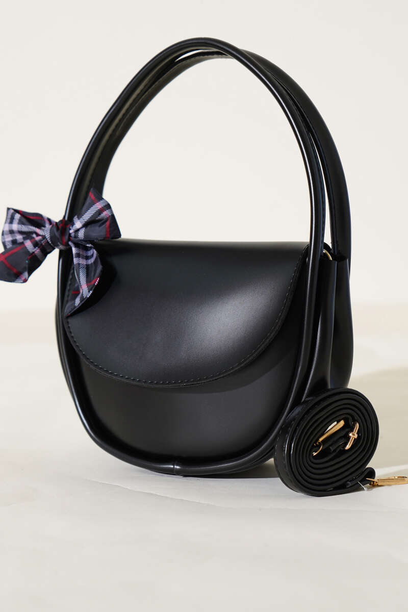 Şeritli Ayıcık Aksesuarlı Omuz Çantası Siyah Taba