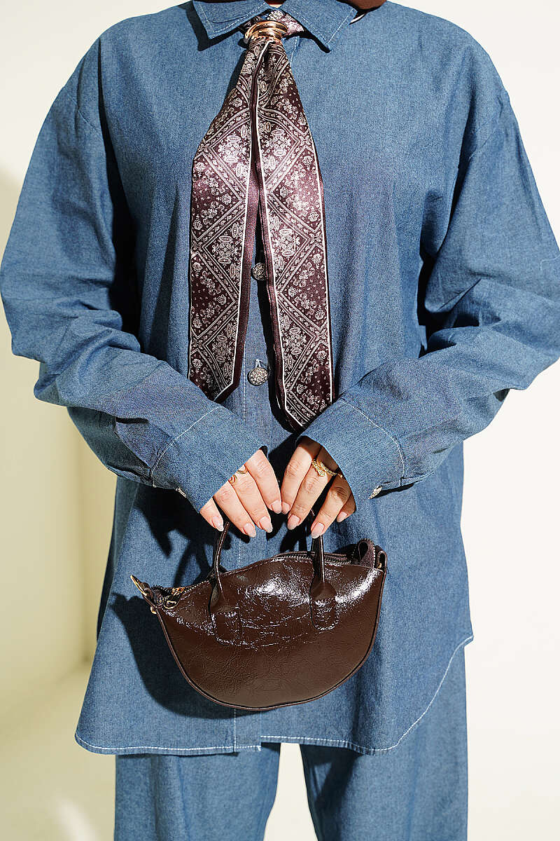 Fular Detaylı Saten İkili Takım Kahve