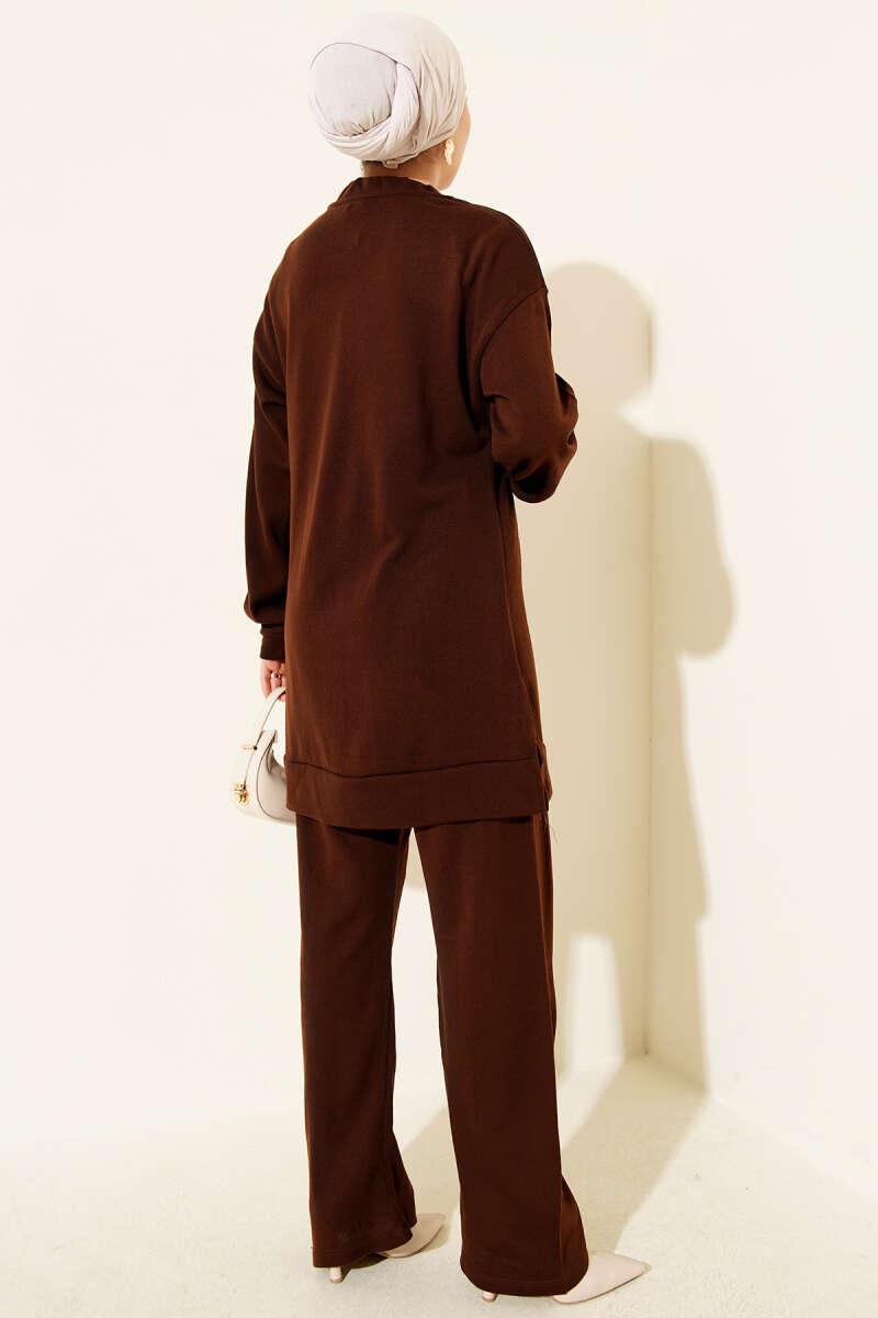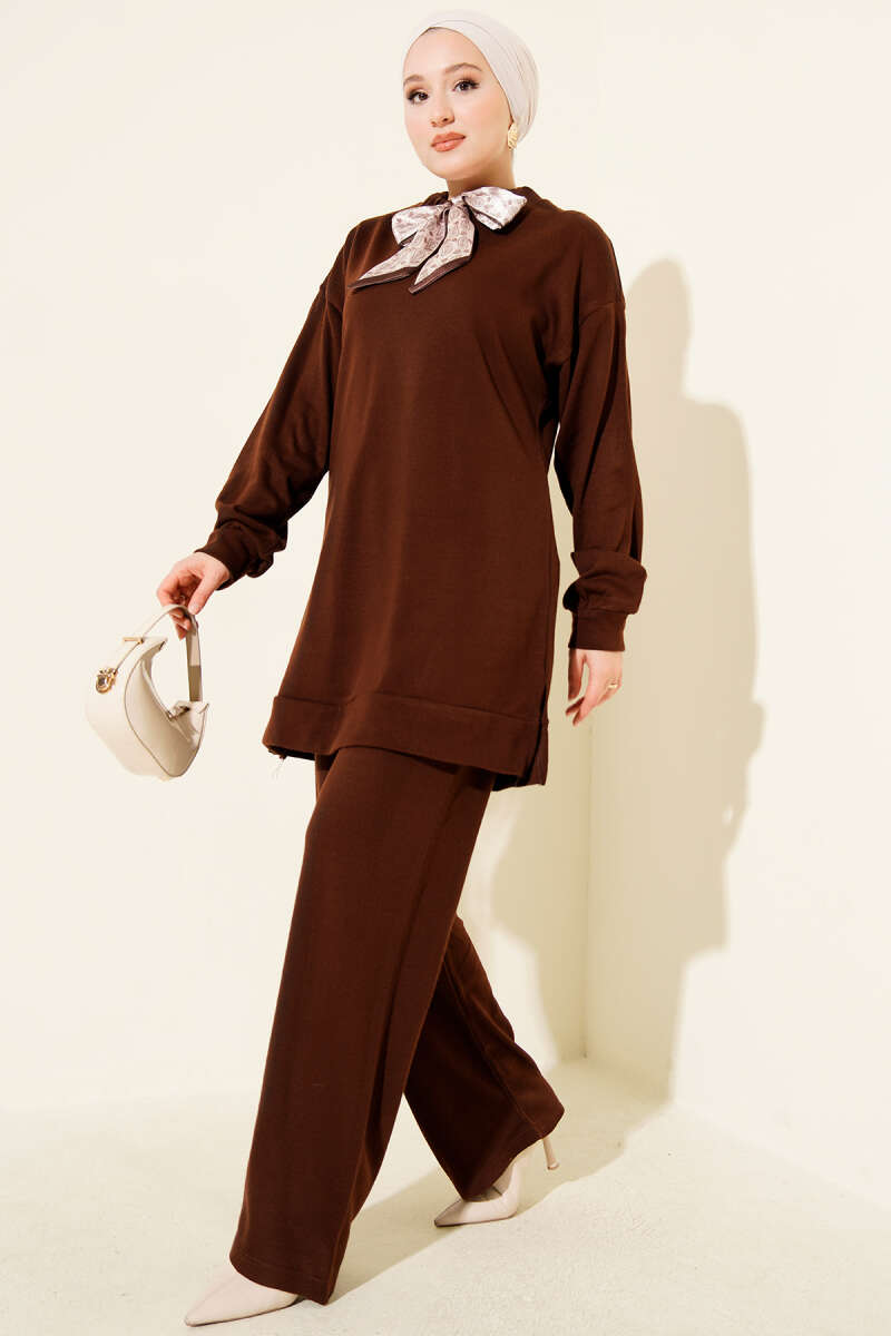 Fularlı Triko İkili Takım Kahve