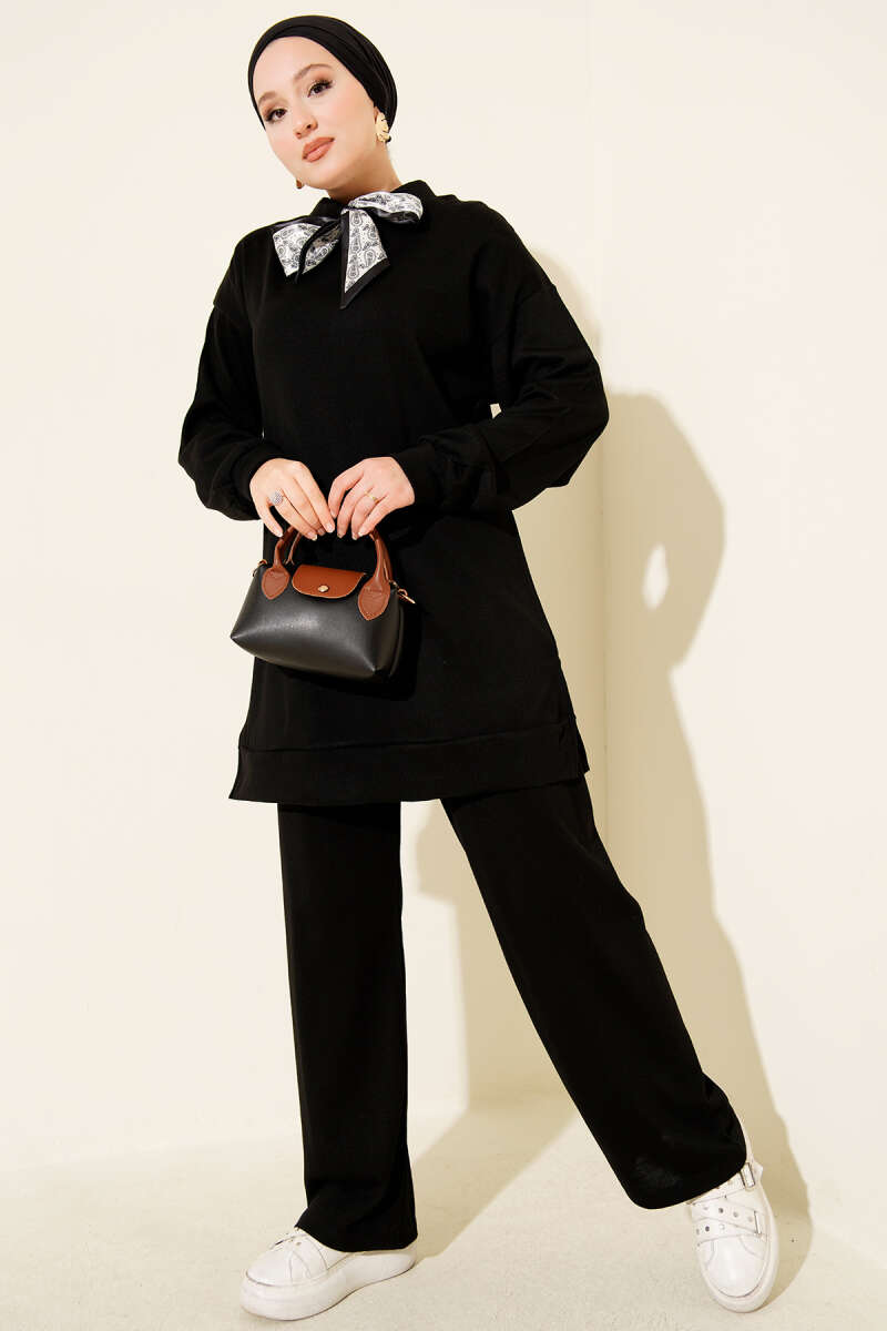 Yaka Taşlı Gömlek Garnili İkili Takım Latte