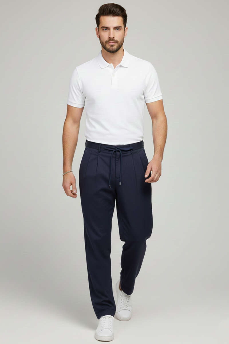 Bel Lastikli Bağcıklı Erkek Pantolon Lacivert