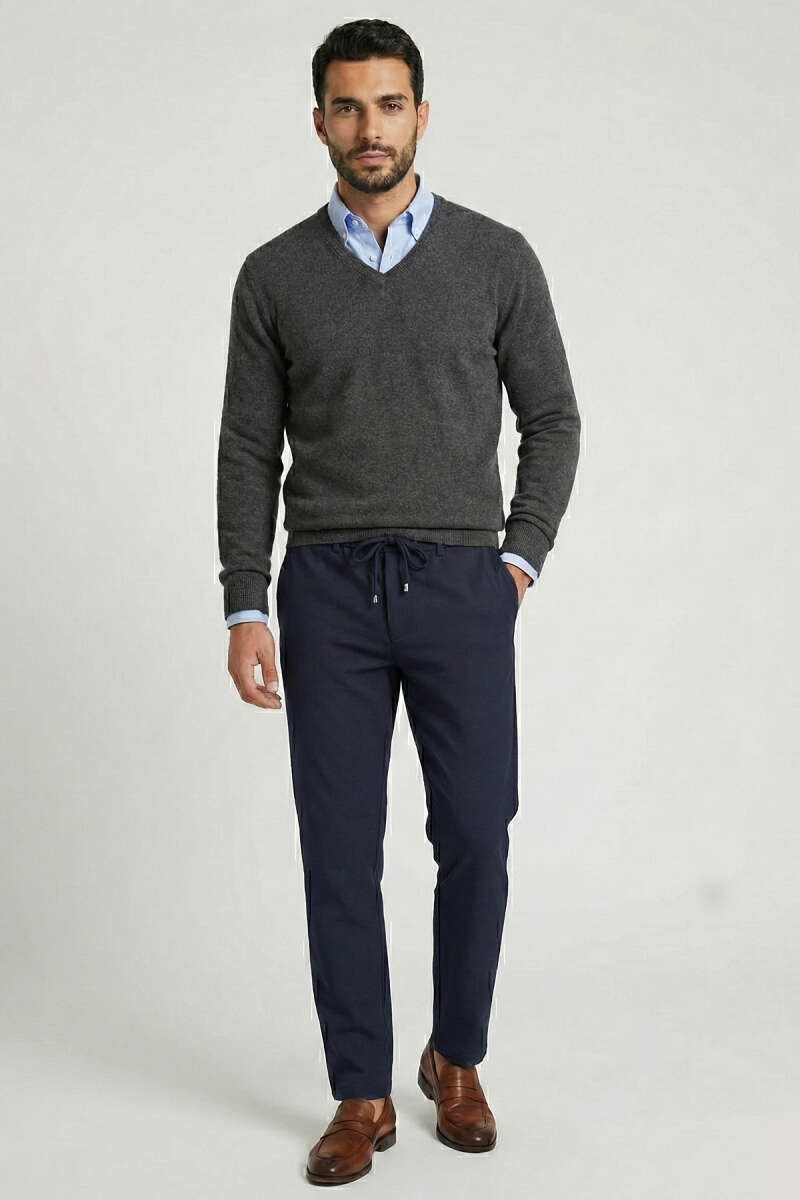 Gabardin Bağcıklı Jogger Pantolon Lacivert