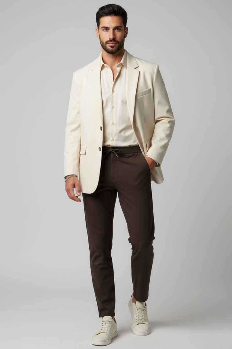 Kruvaze Yaka Altı Düğmeli Blazer Ceket Taş