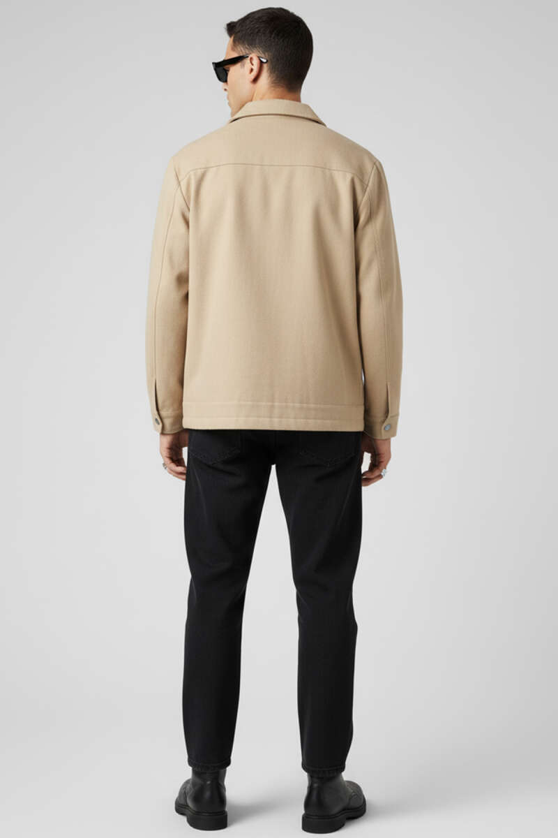 Gabardin Fermuarlı Erkek Ceket Bej