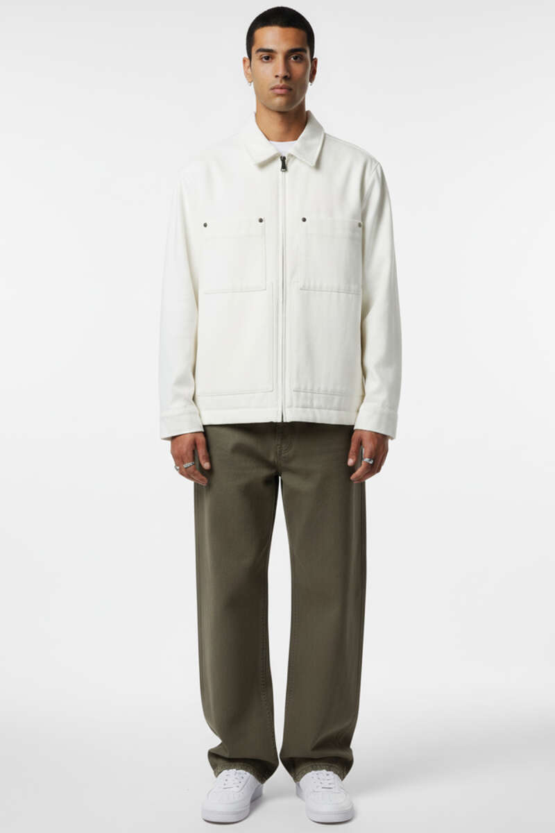 Gabardin Fermuarlı Erkek Ceket Ekru