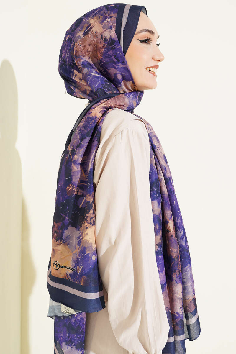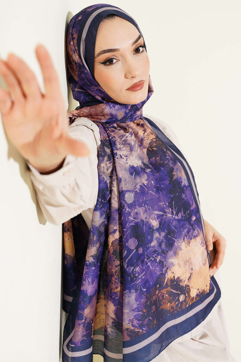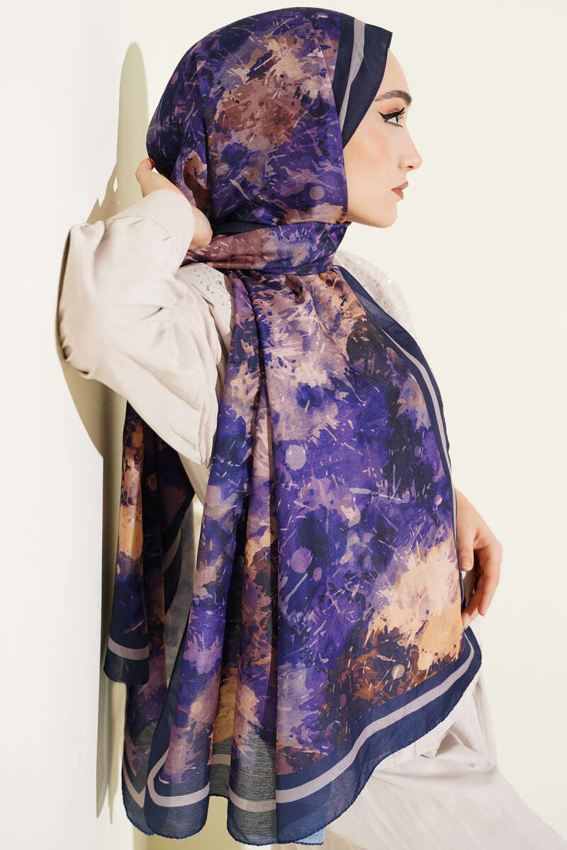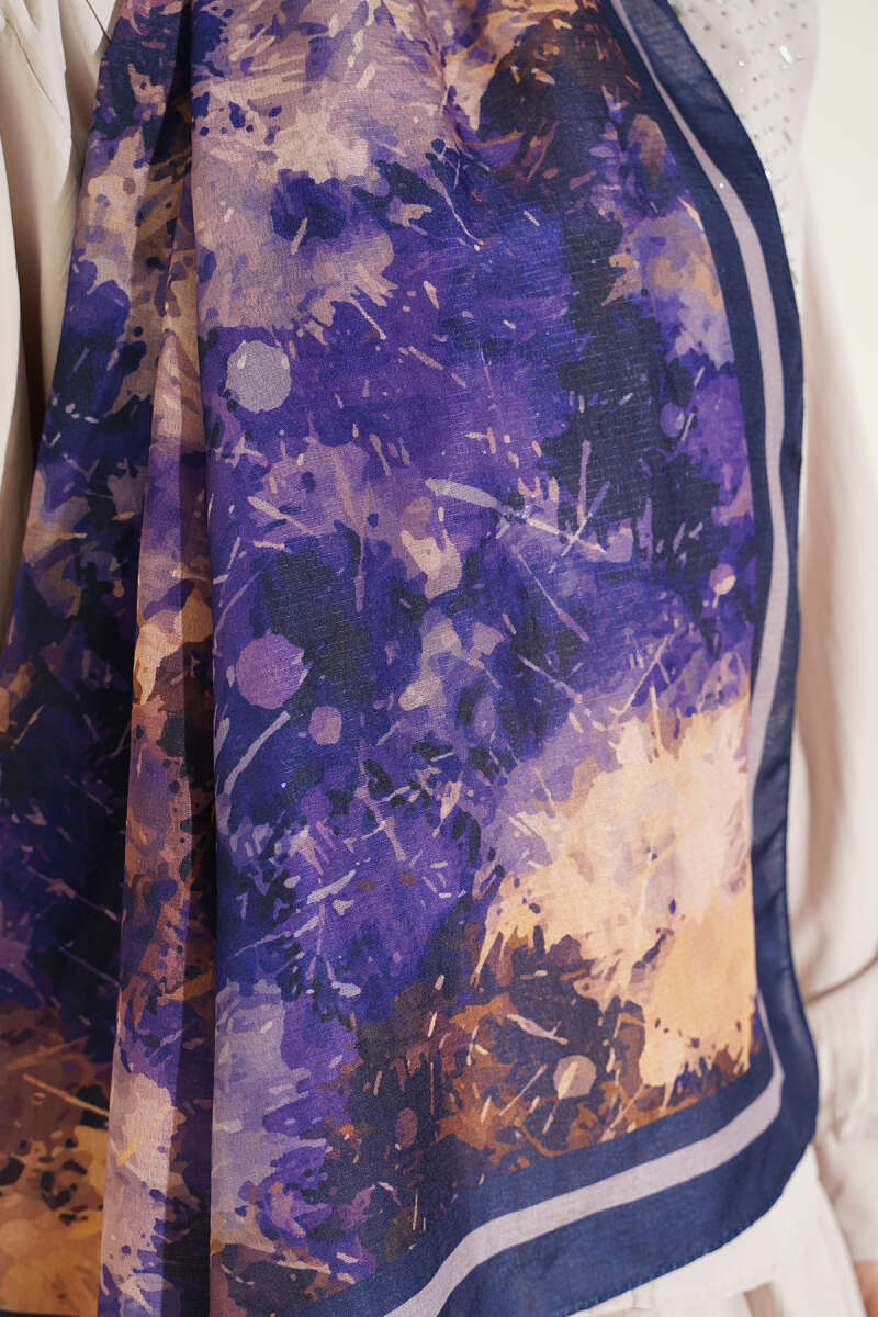Mini Çiçek Detaylı Eşarp Lacivert Mavi