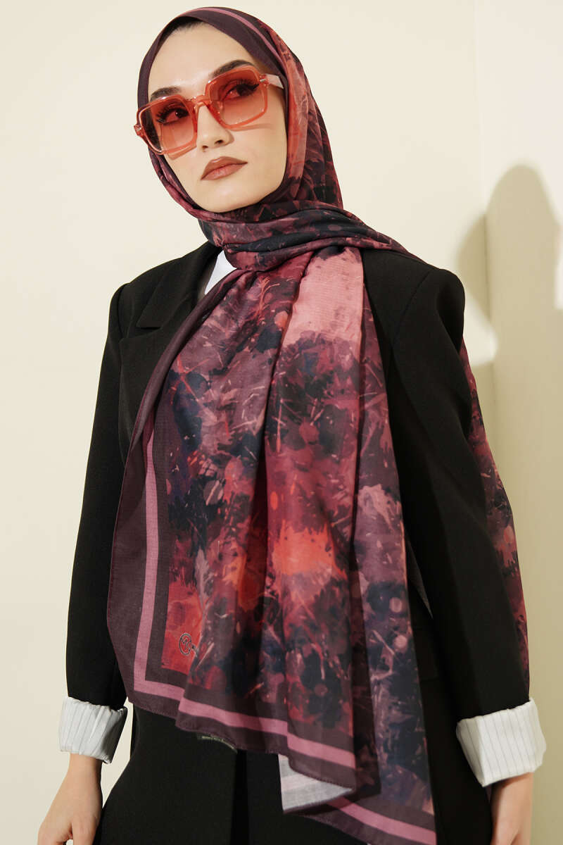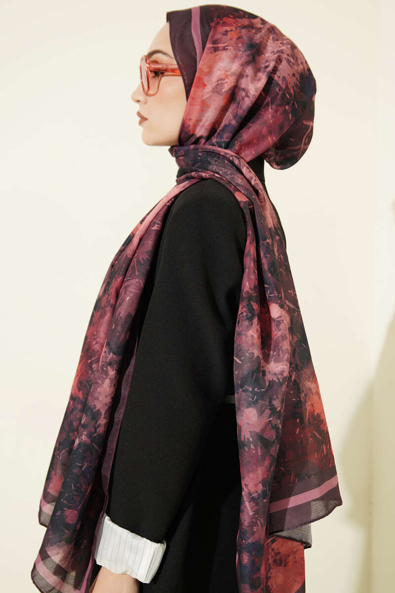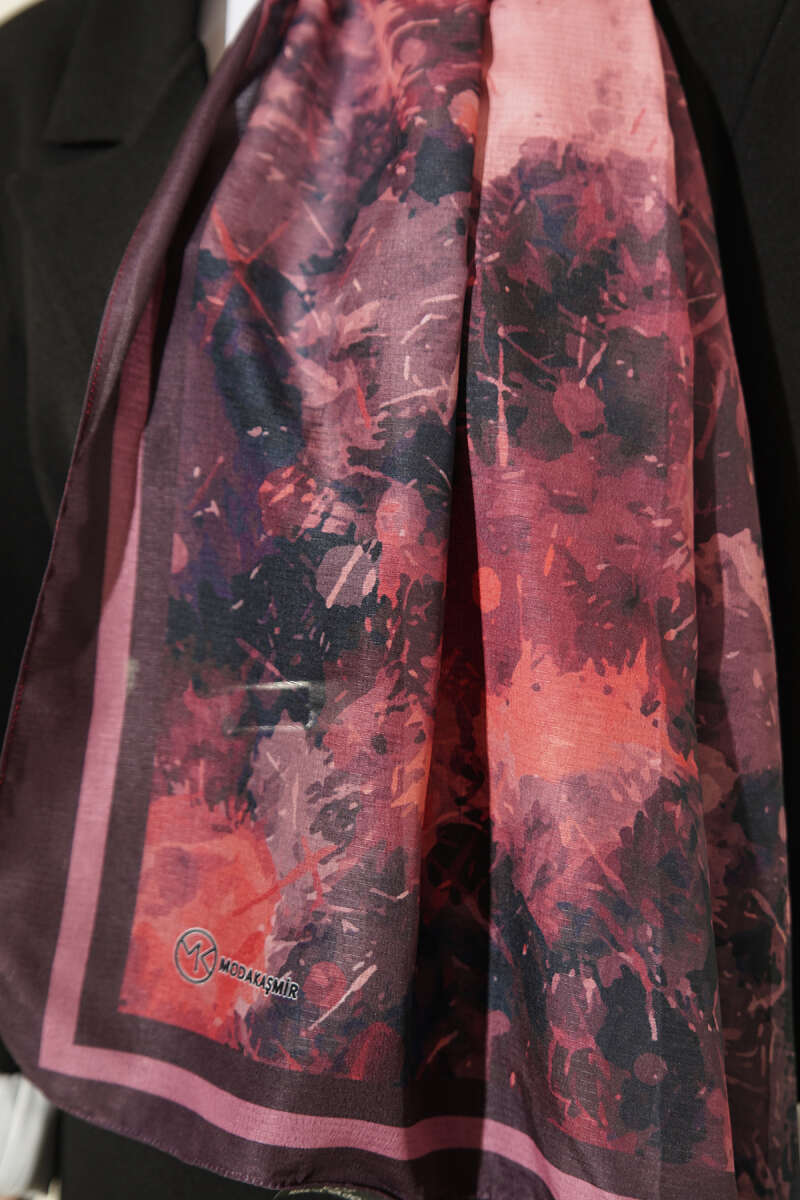 Ebru Desenli Bambu Kraş Şal Kiremit
