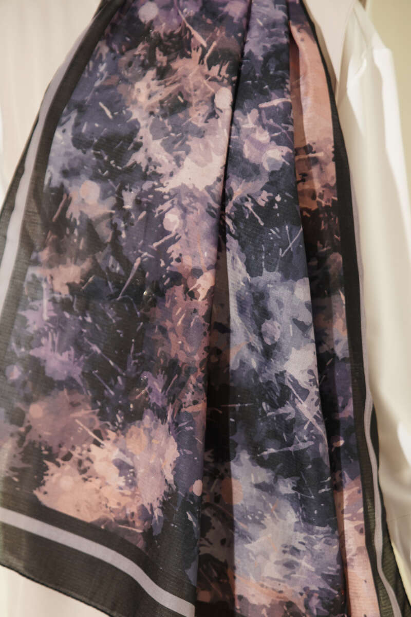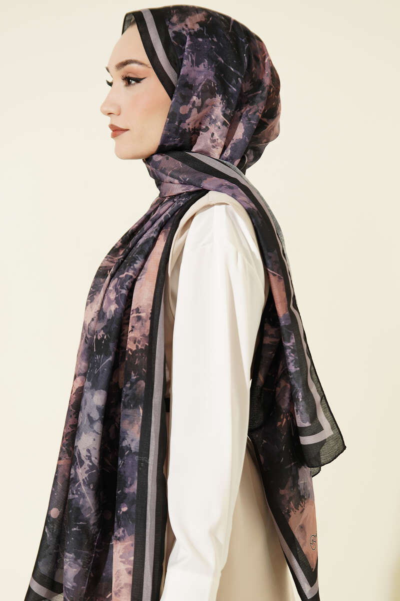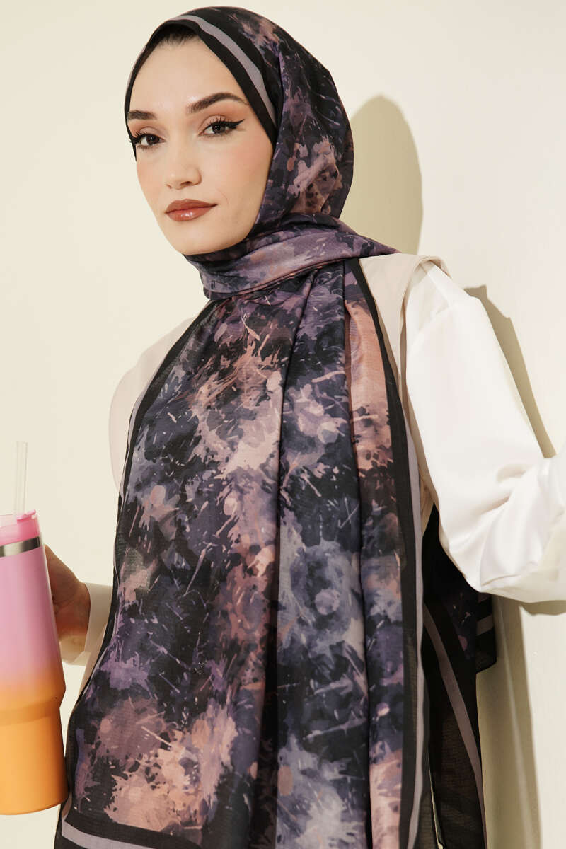 Karışık Desen Kruvaze Yaka Elbise İndigo