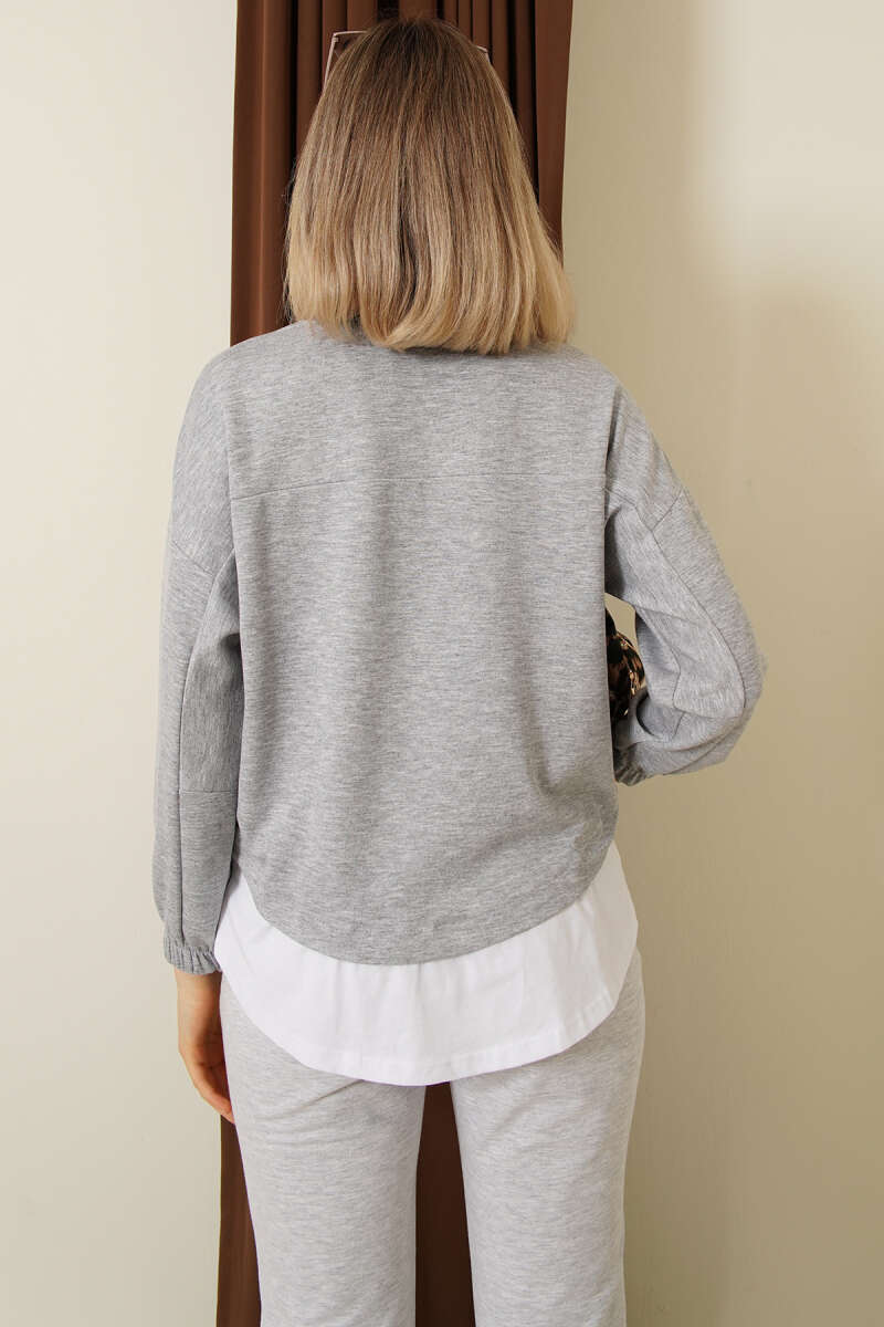Garnili Armalı Loyşa Sweatshirt Gri