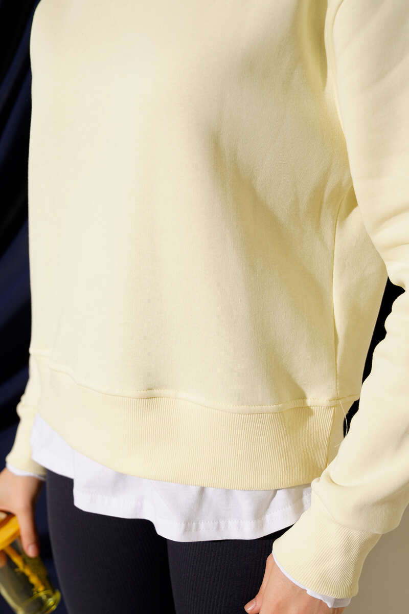Garnili Bisiklet Yaka Sweatshirt Sarı