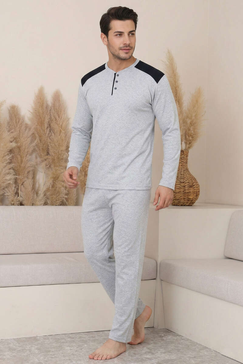 Garnili Büyük Beden Erkek Pijama Takımı Gri
