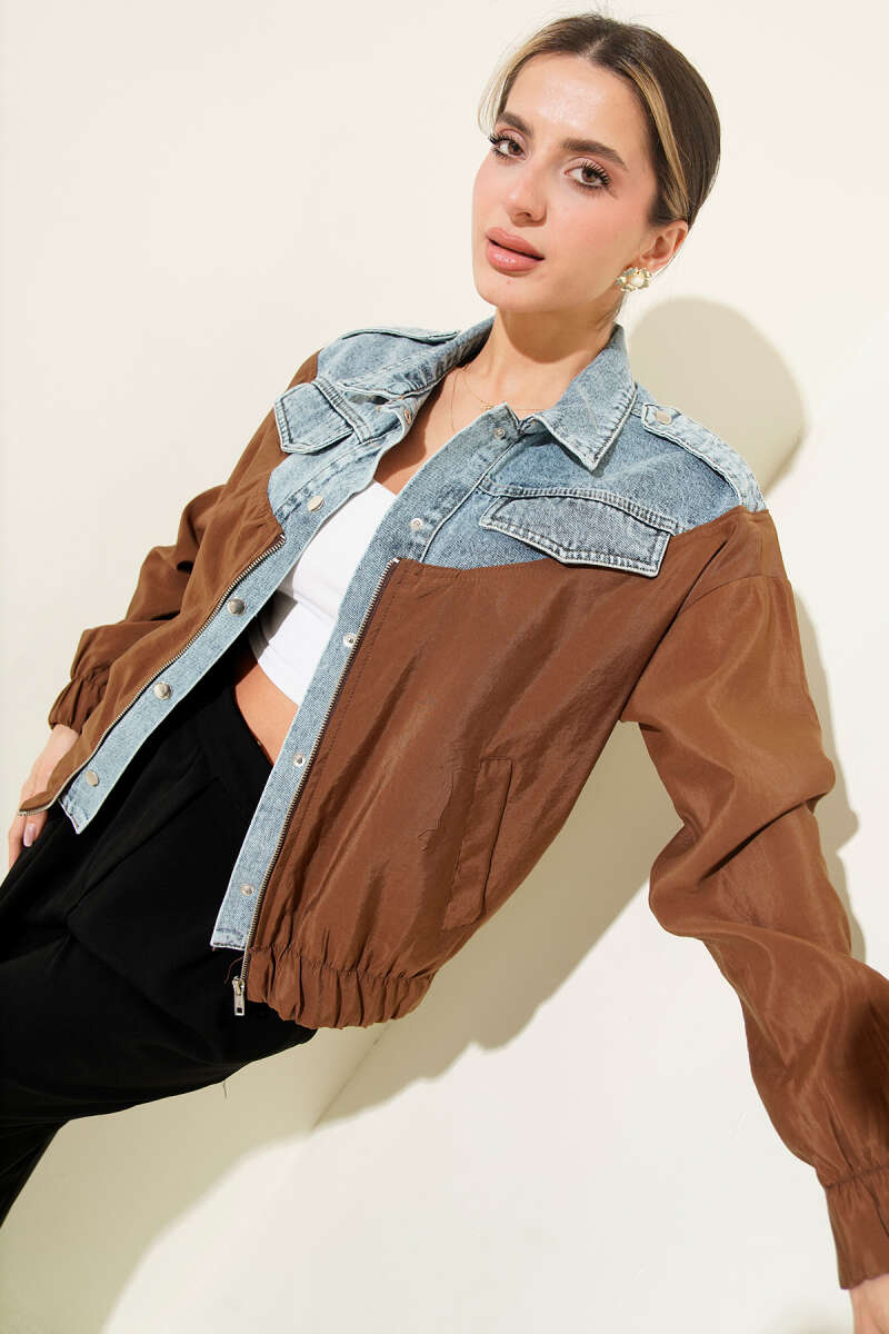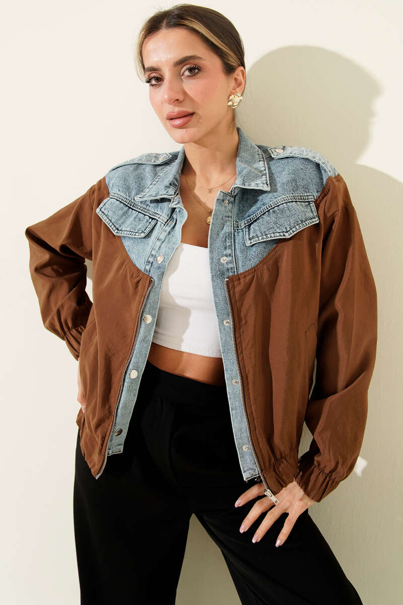 Garnili Cep Kapaklı Bomber Ceket Kahve
