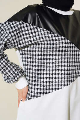 Yeni sezon tuniğimiz şık tasarımıyla sizlerle beraber. Deri detayı ile göz kamaştıran tuniğimiz ekose detayı ile hareketlilik kazanmıştır. Omuzları düşük modeldir. Oversize model olan tuniğimizin kol bilekleri rabinalıdır. Kombinlerinizin yıldız parçası olacak tuniğimiz dolaplarınızda yerlerini beklemektedir.