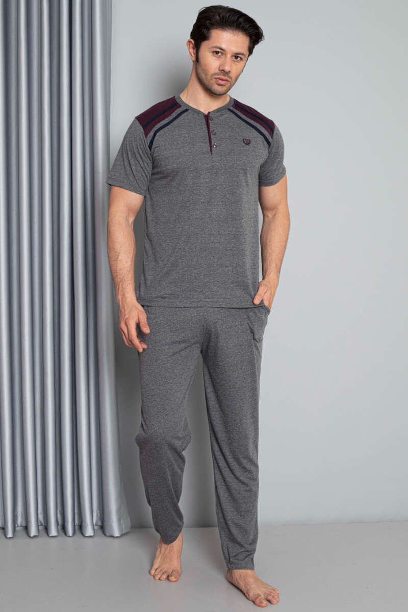 Garnili Düğmeli Kısa Kol Erkek Pijama Takımı Antrasit