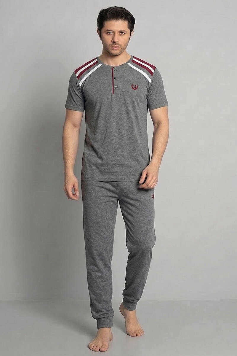 Garnili Düğmeli Kısa Kol Erkek Pijama Takımı Füme