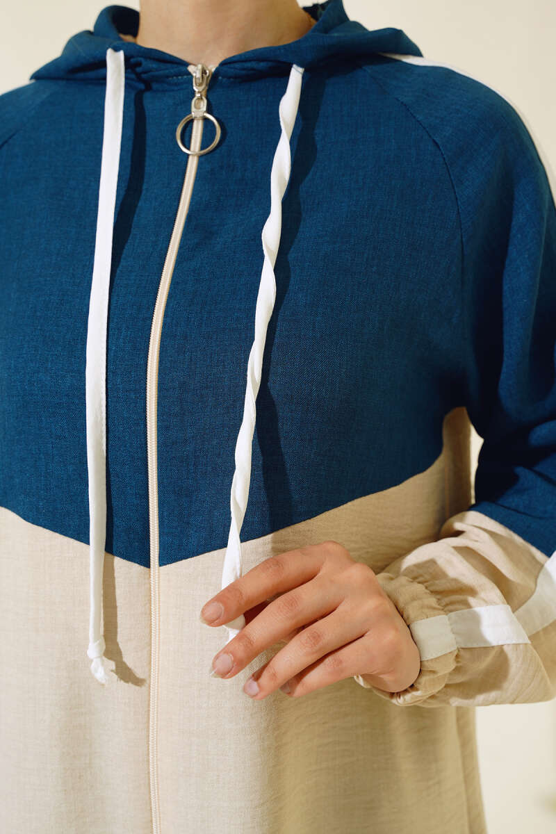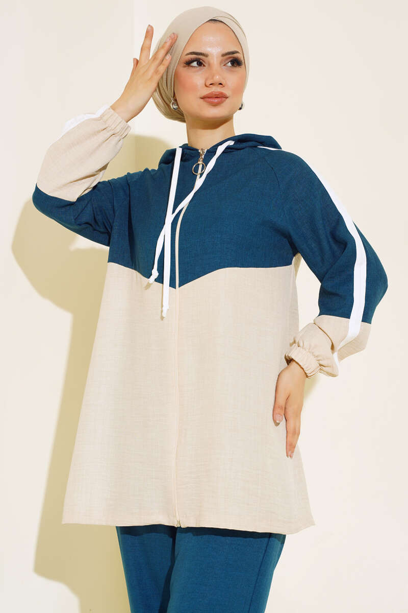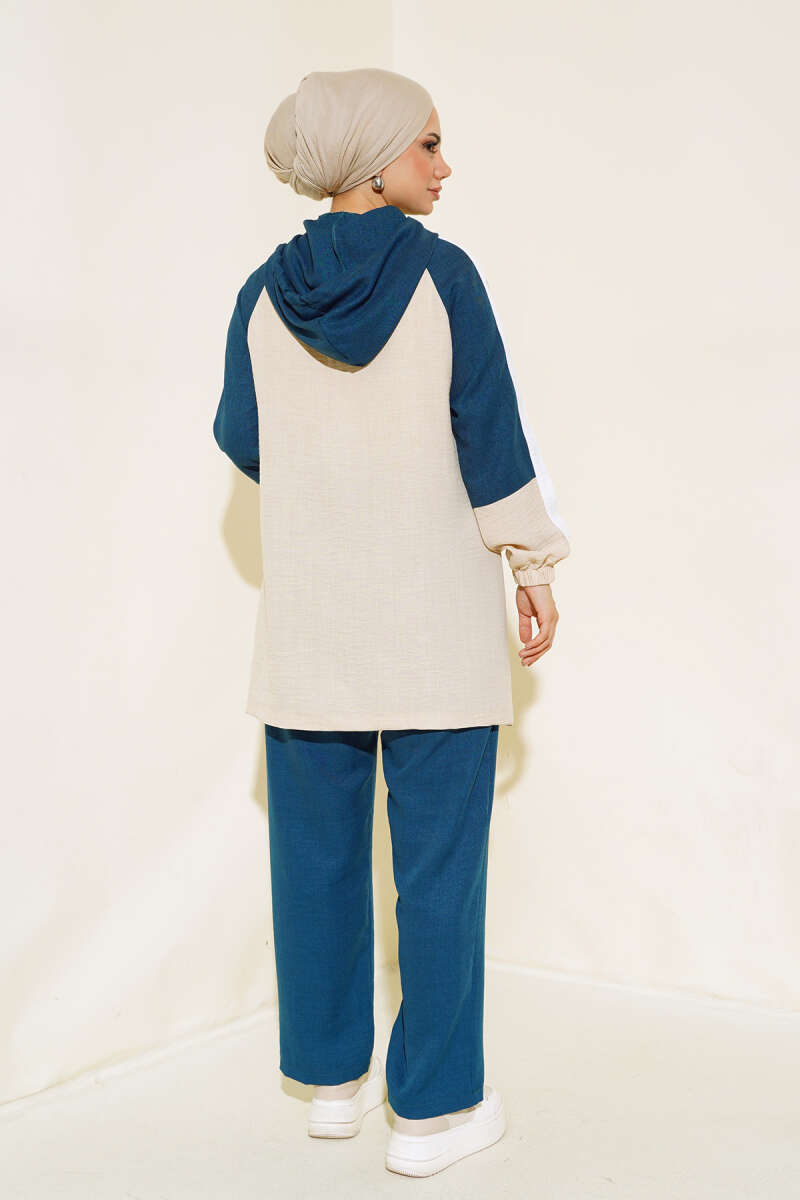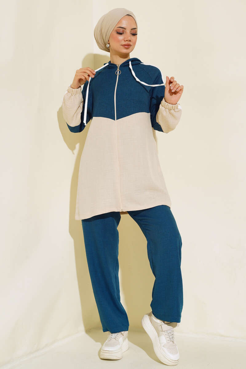 Garnili Fermuarlı Keten İkili Takım Petrol