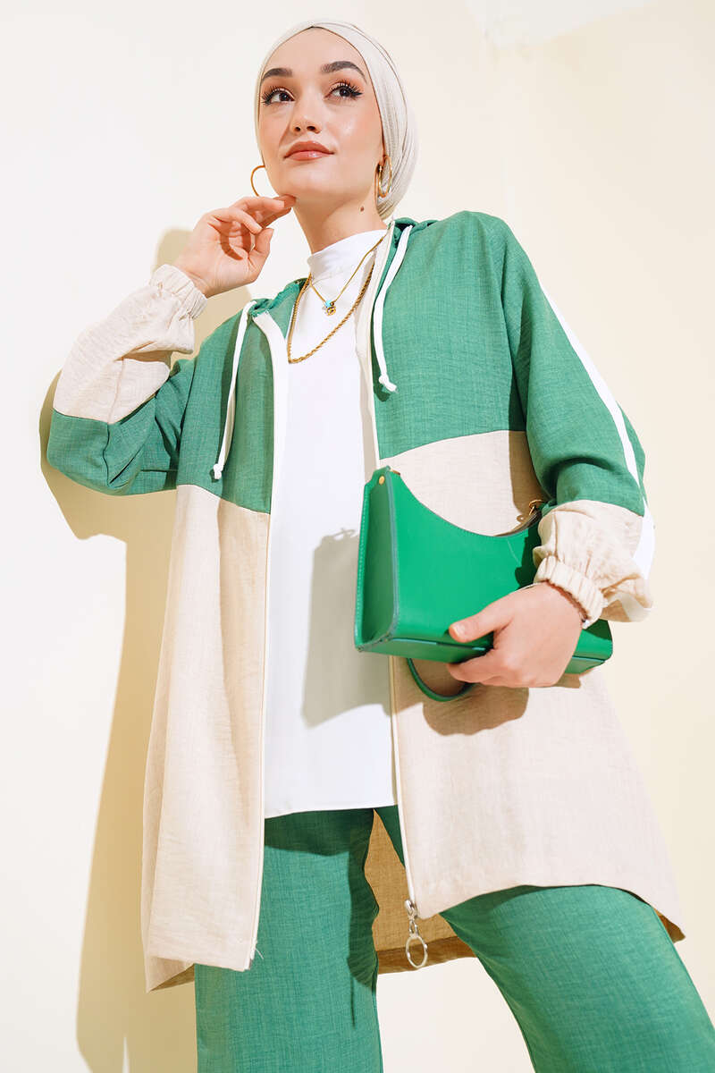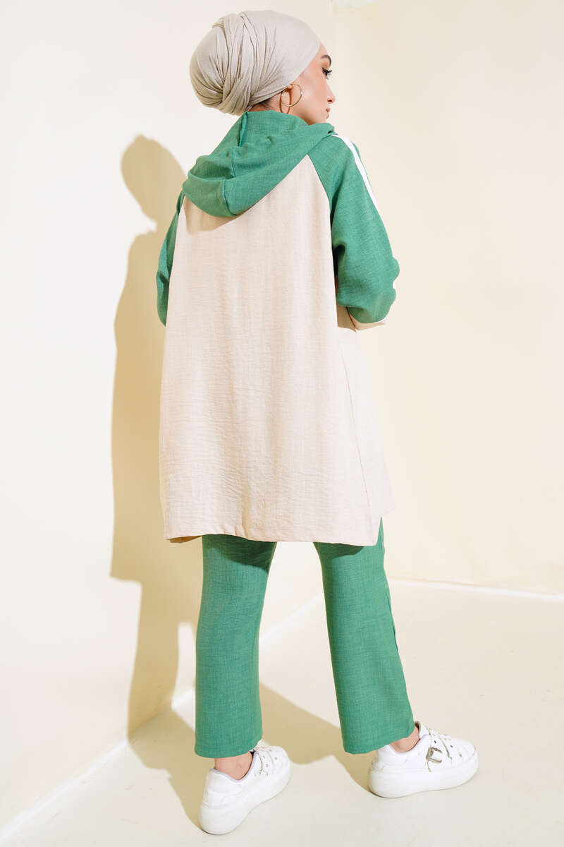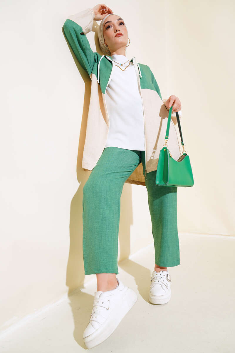 Garnili Fermuarlı Keten İkili Takım Yeşil