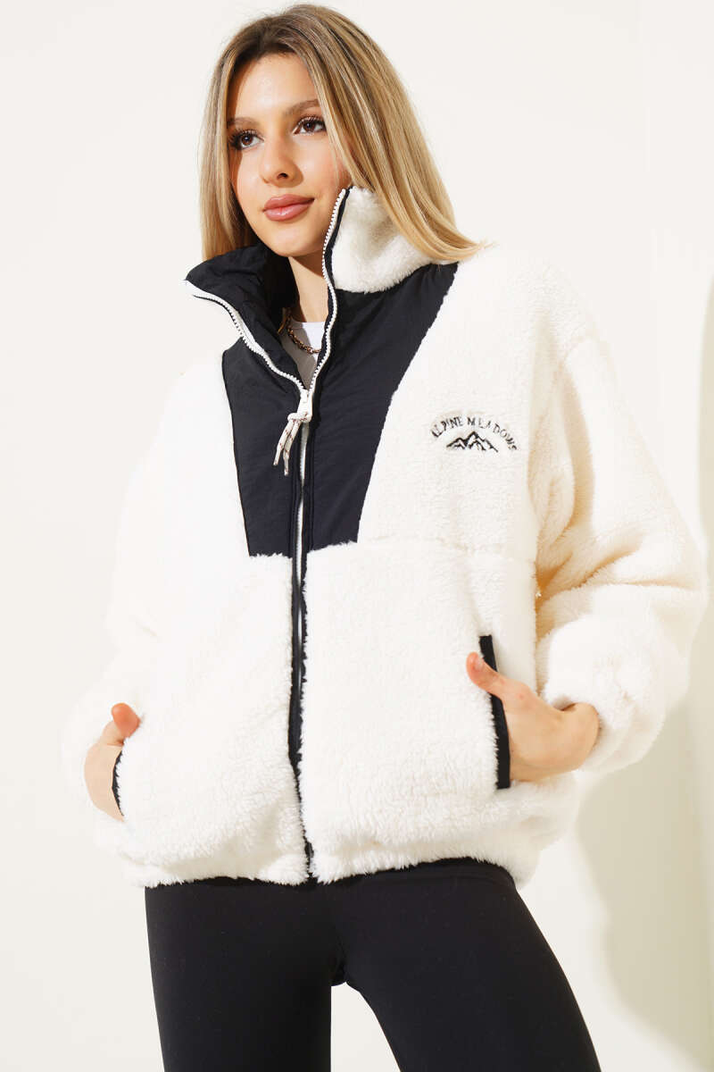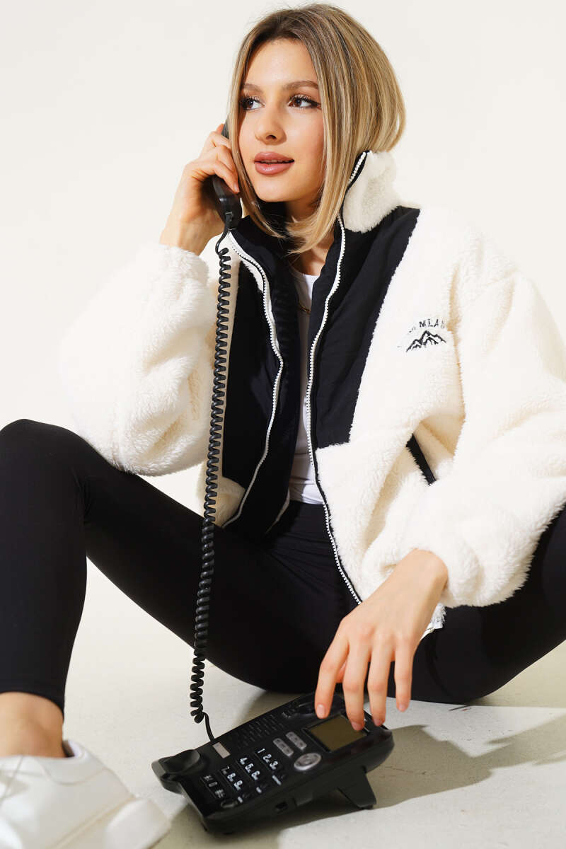 Peluş Yaka Kemerli Kaşe Panço Siyah