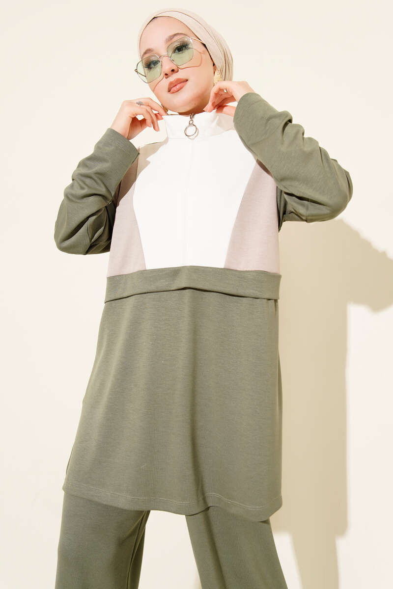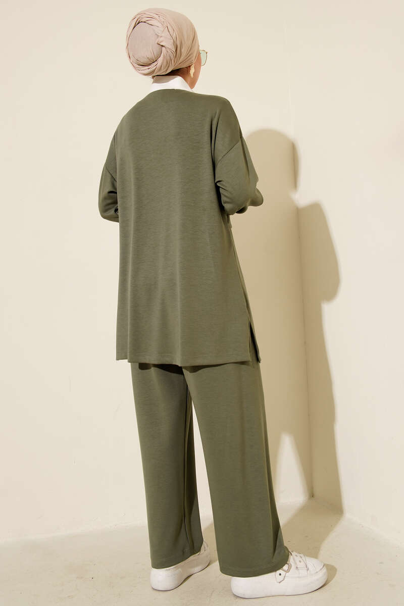Önü Pileli Kemerli Scuba İkili Takım Haki