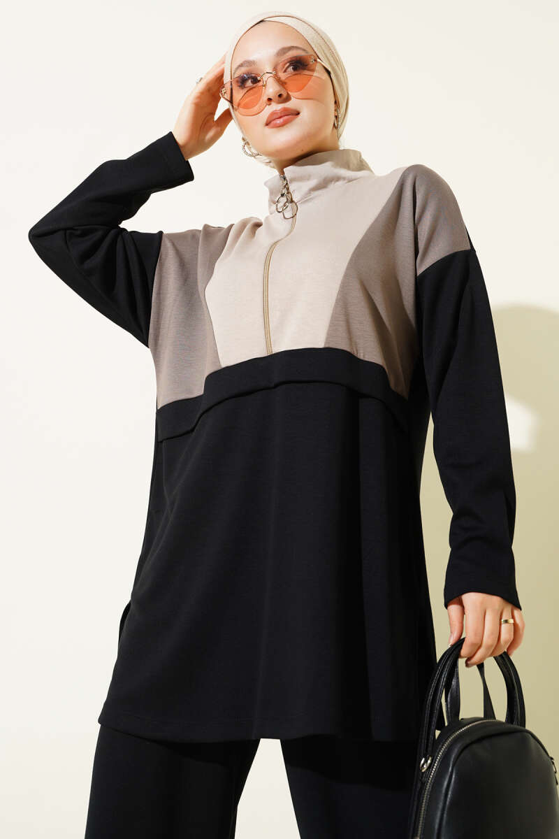 Garnili Yarım Fermuar Detaylı İkili Takım Lacivert