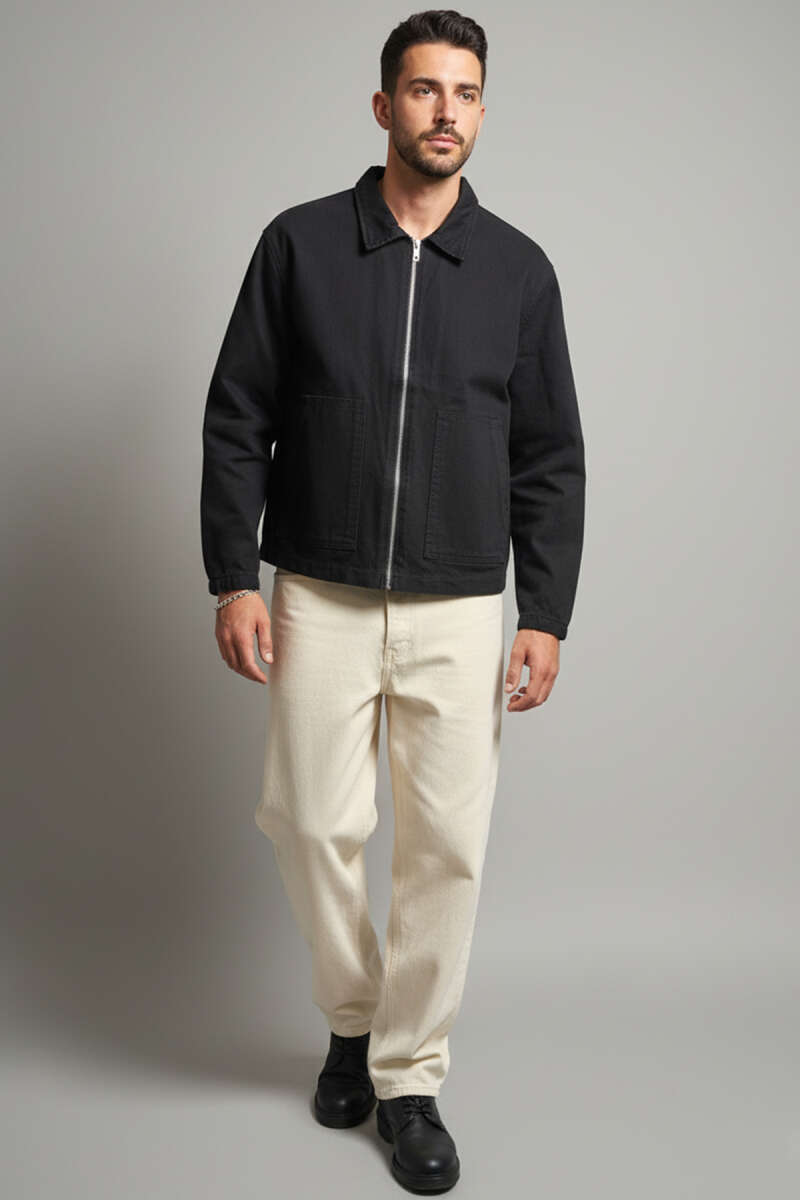 Geniş Cepli Fermuarlı Erkek Ceket Taş