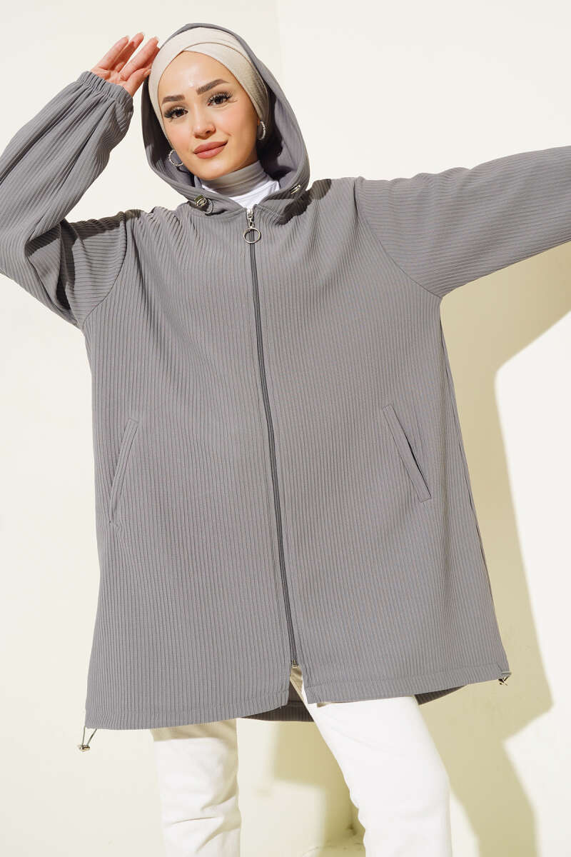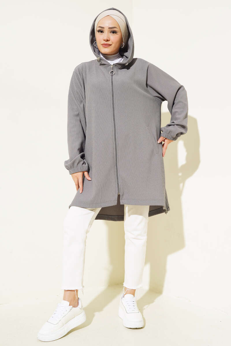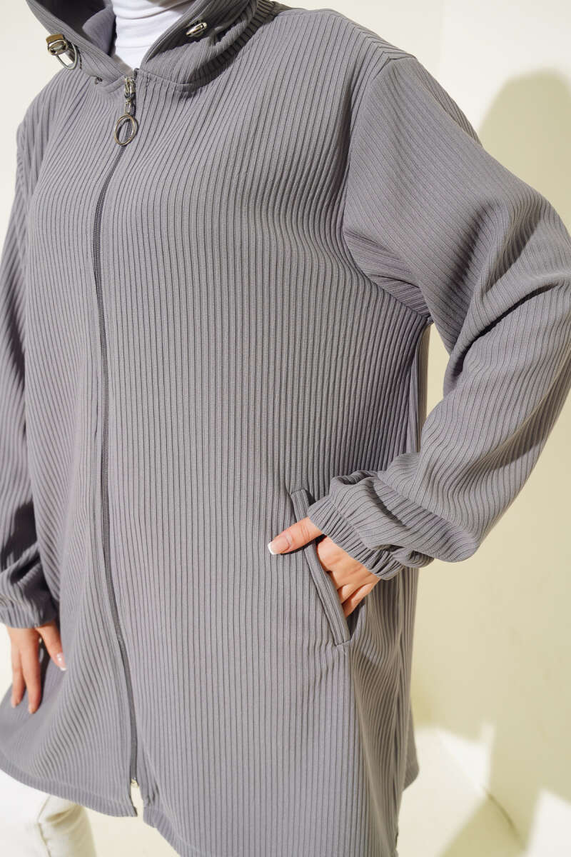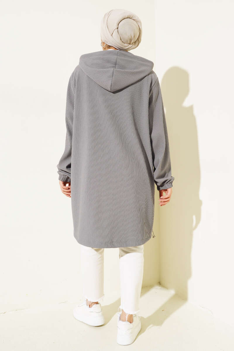 Yarım Fermuarlı Basıc Uzun Tunik Kahve