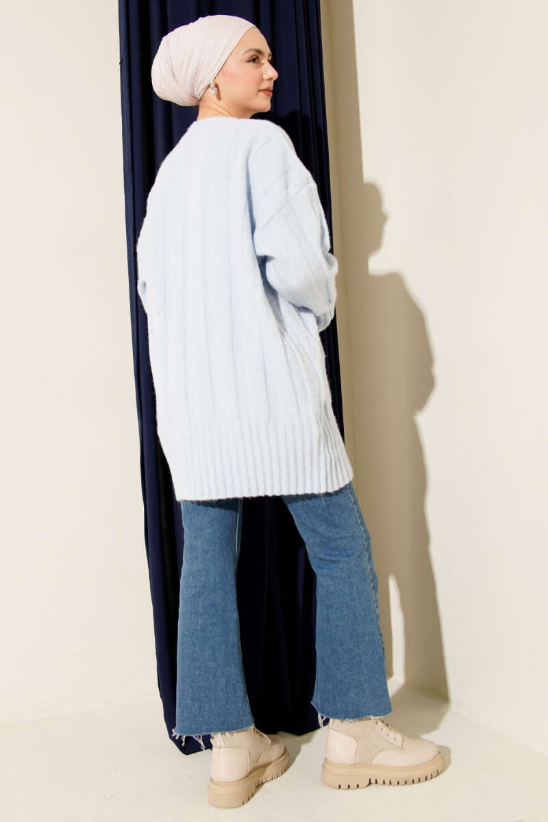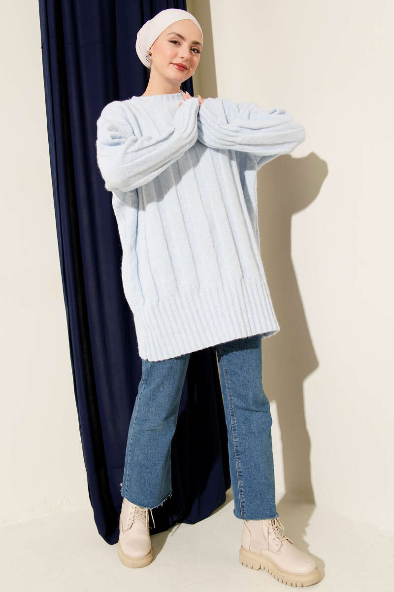 Geniş Fitilli Triko Yumoş Tunik Gri