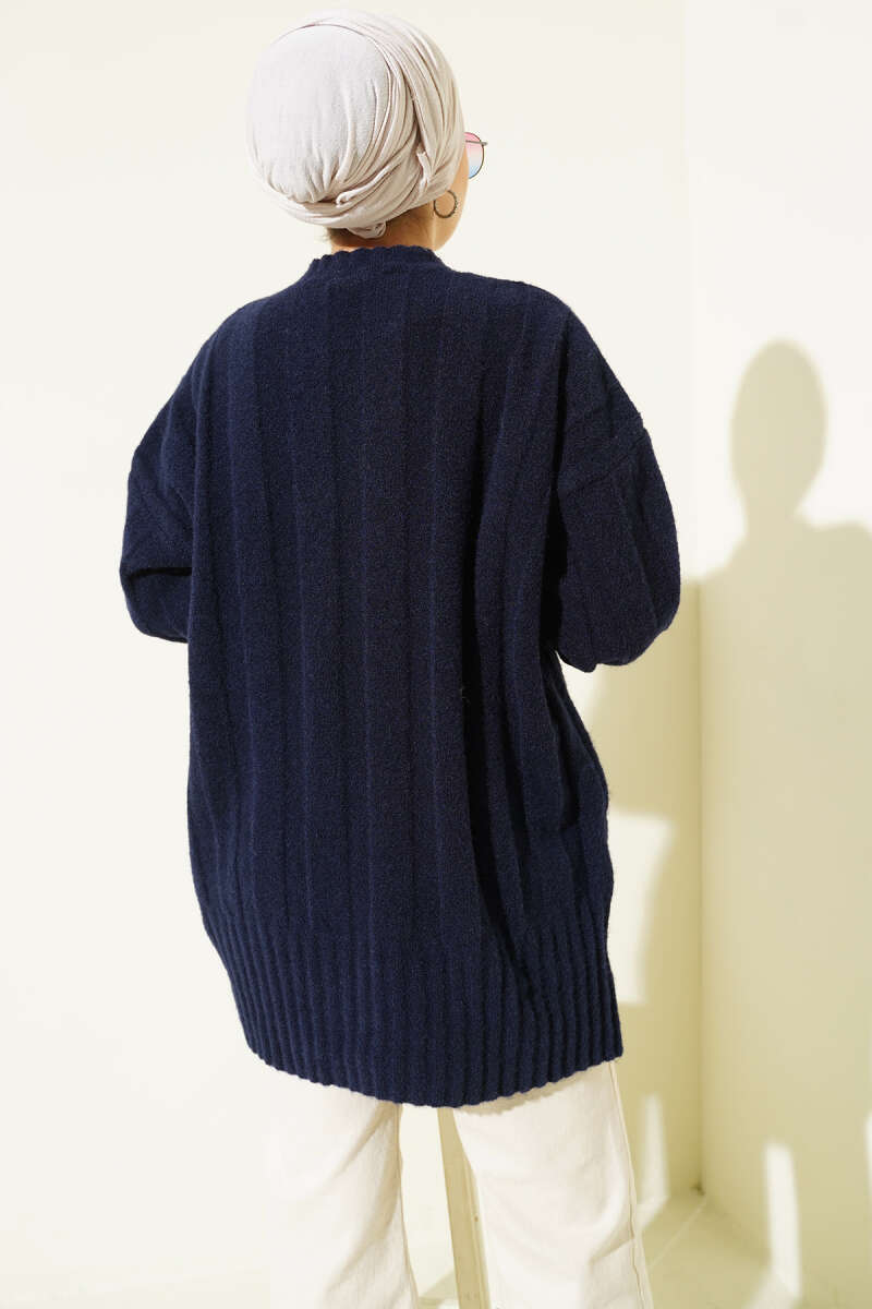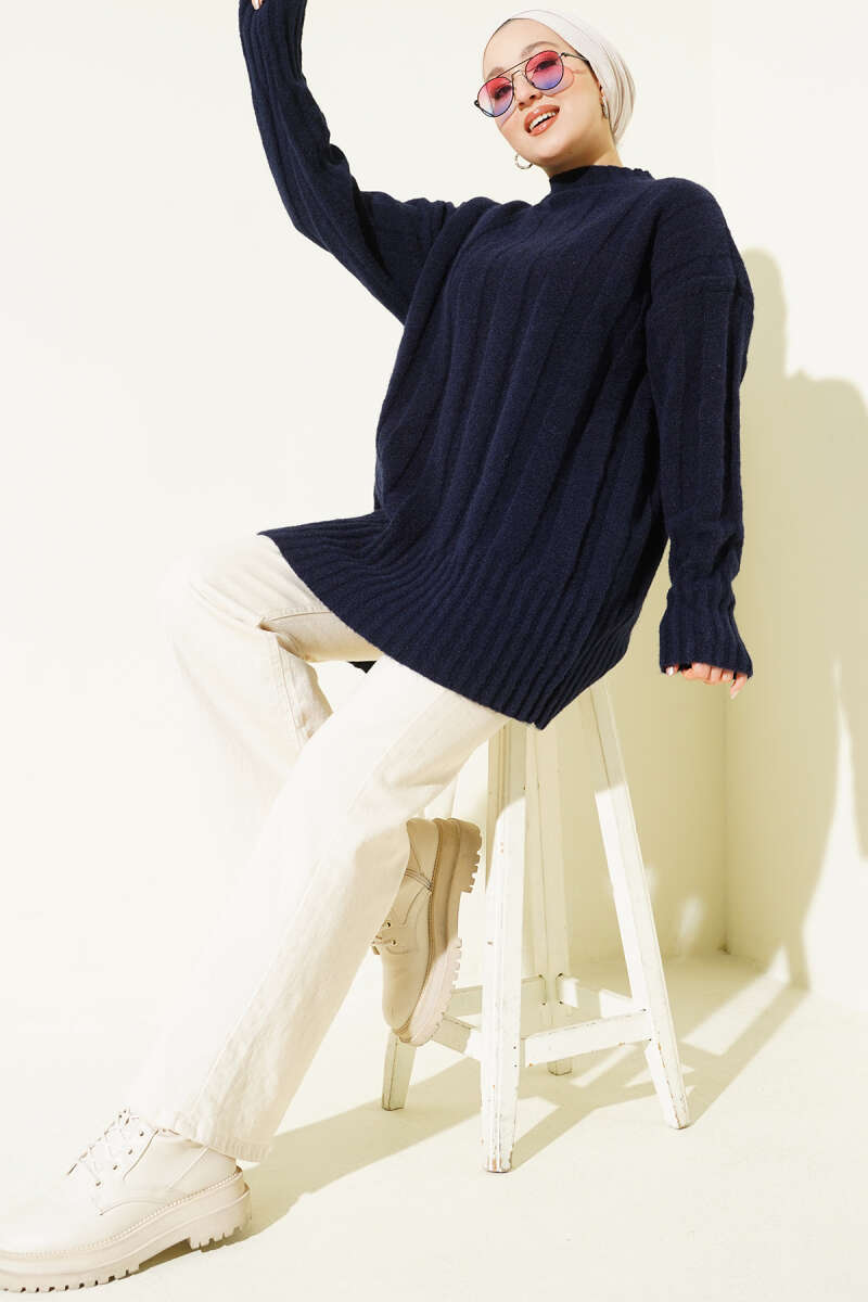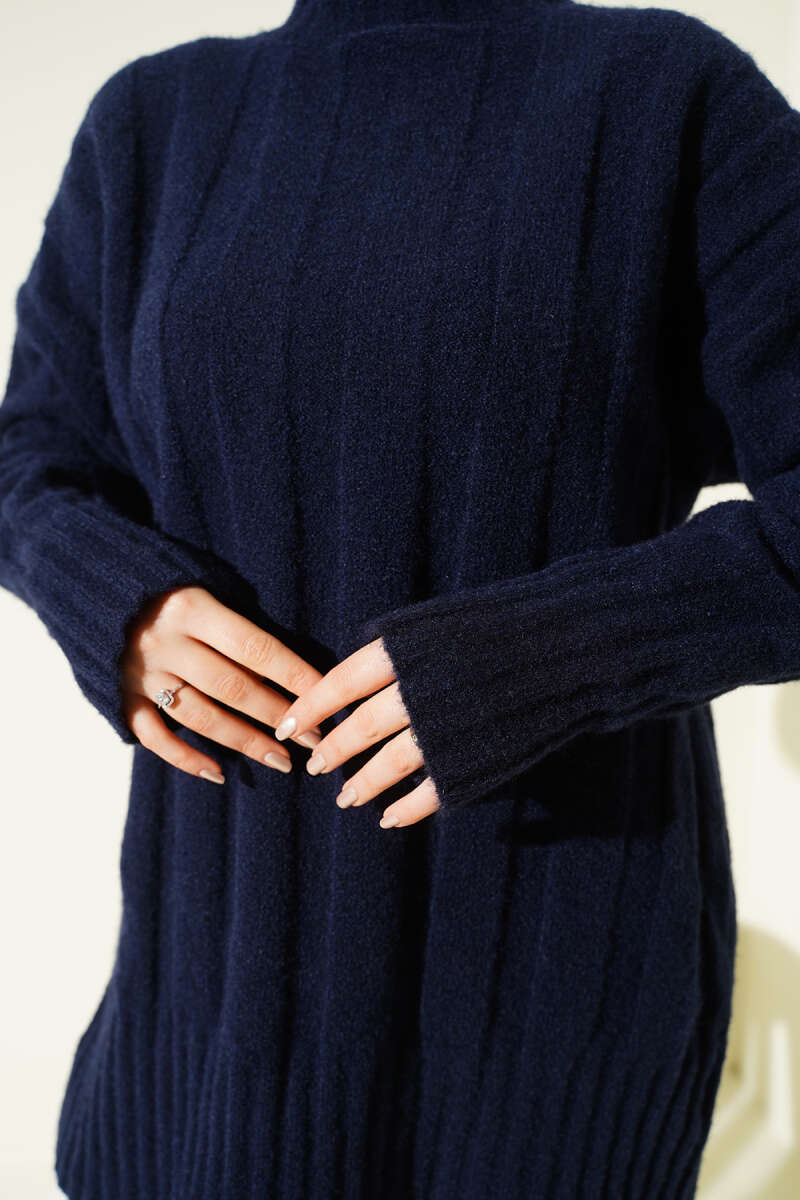 Geniş Fitilli Triko Yumoş Tunik Lacivert