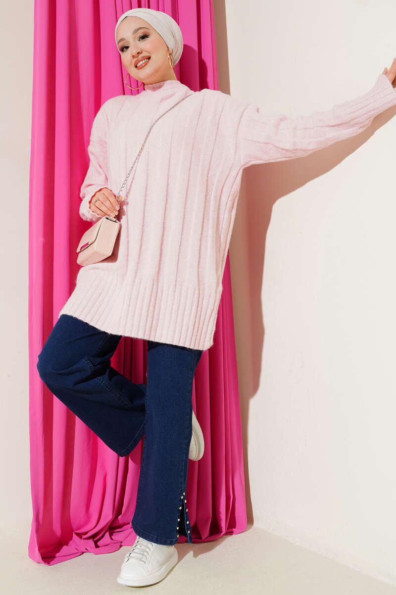 Çizgi Baklava Desen Triko Tunik Gül Kurusu
