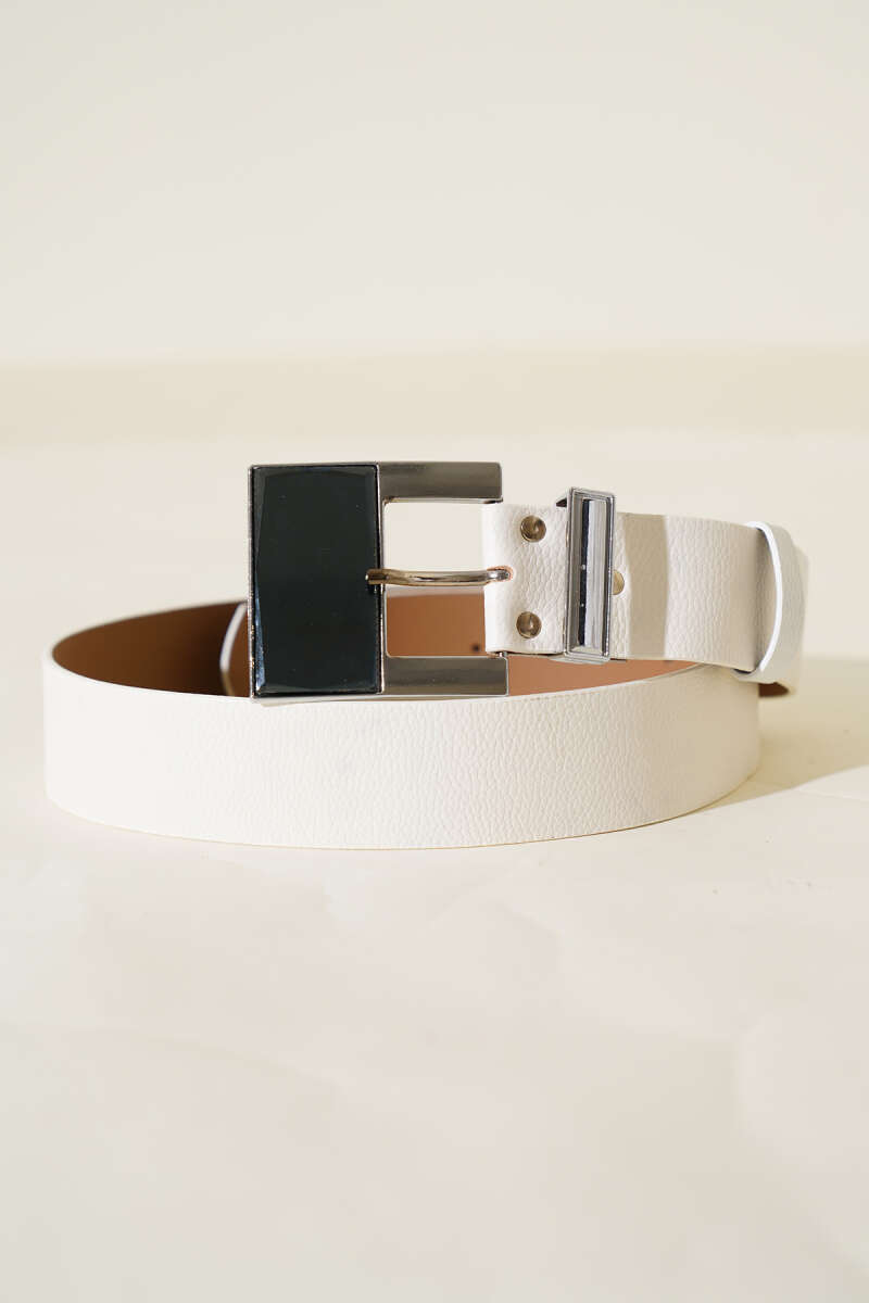 Geniş Kare Tokalı Kemer Beyaz