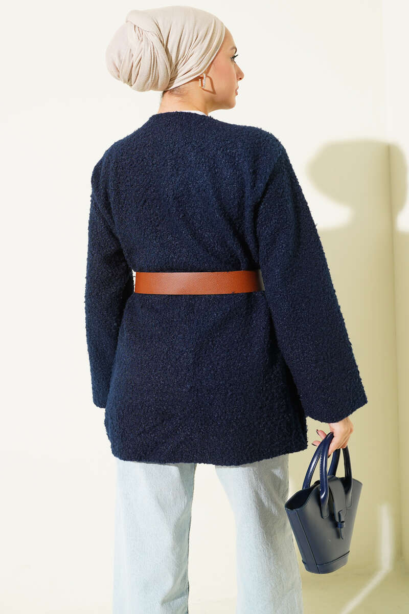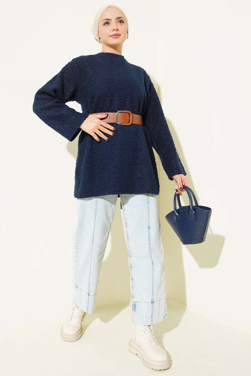 Asimetrik Kabartma Çizgili Triko Tunik Lacivert