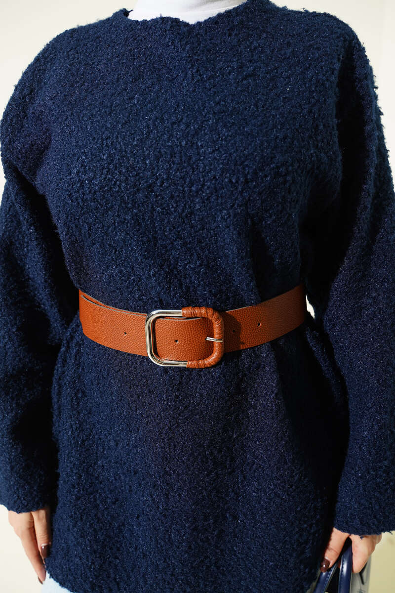 Geniş Kemerli Buklet Tunik Siyah