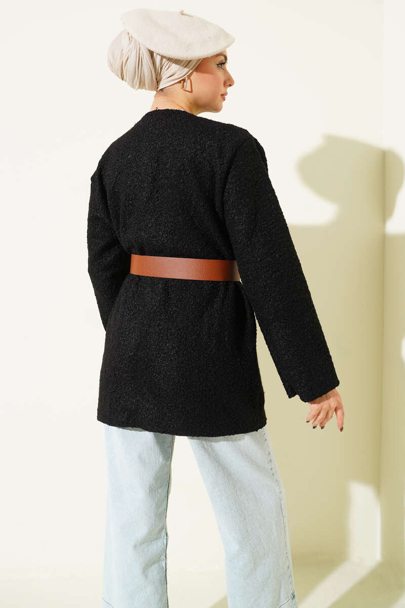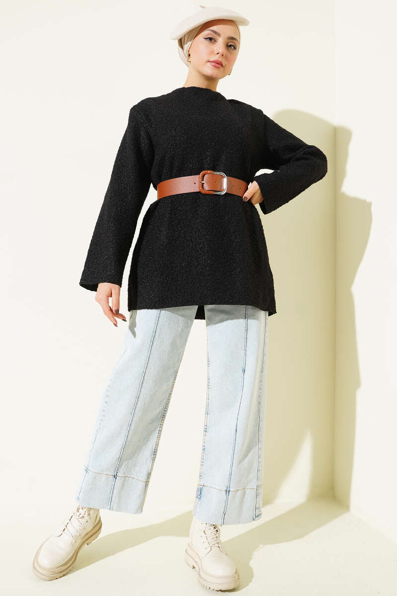 Gömlek Yaka Düğmeli Kaşe Panço Siyah