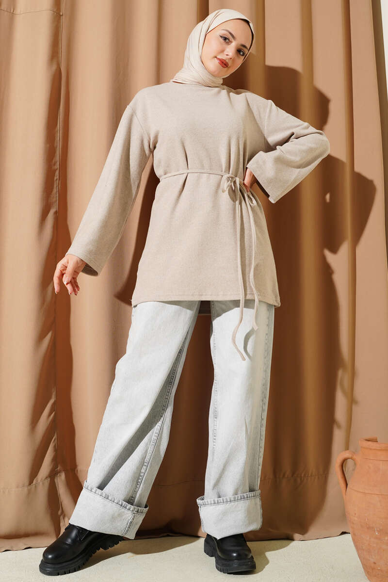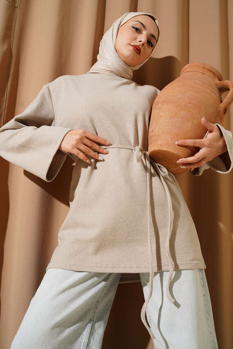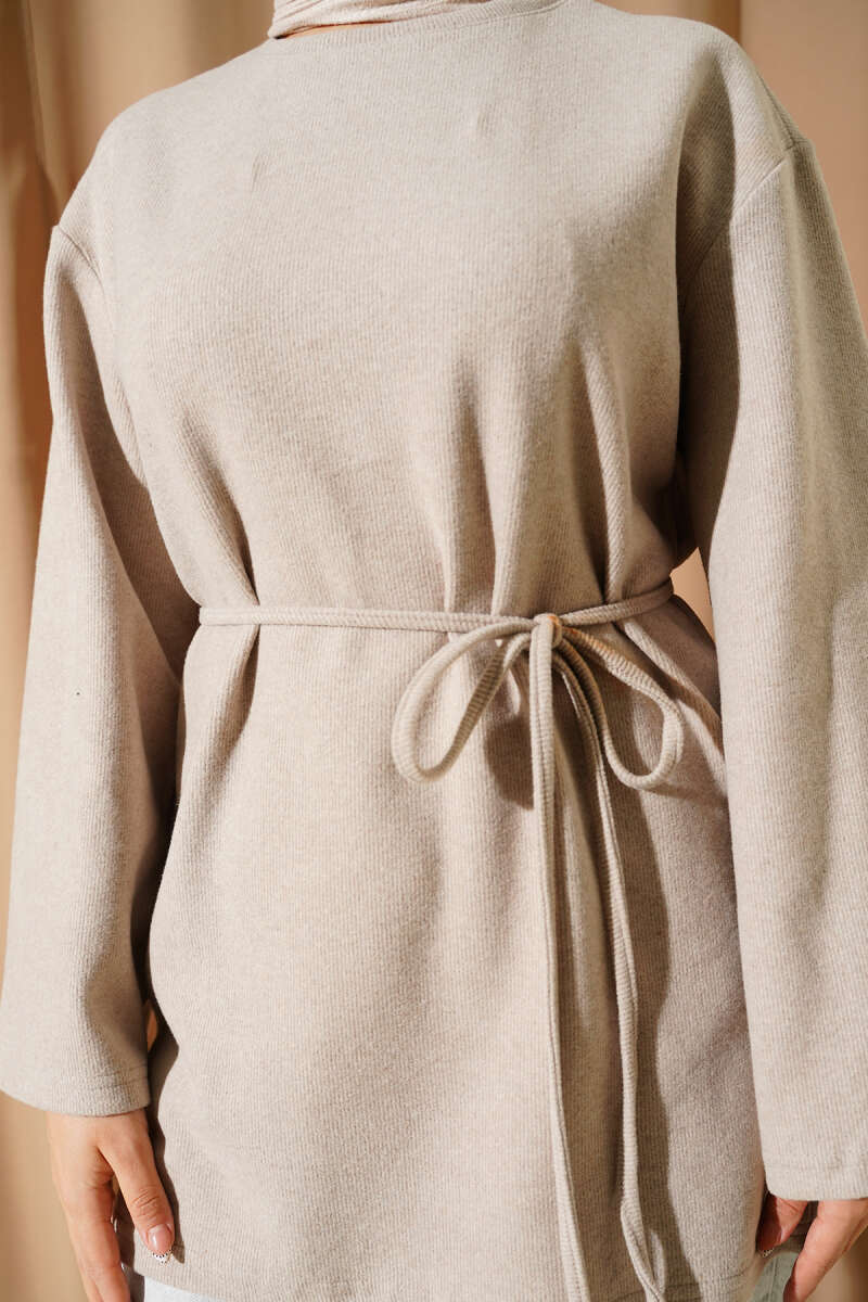 Geniş Kollu Fitilli Kaşe Tunik Siyah