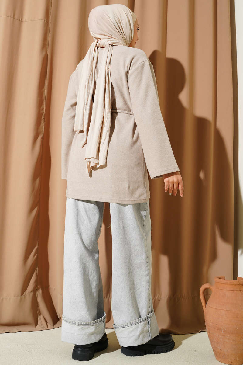 Saç Örgülü Düğmeli Triko Hırka Latte