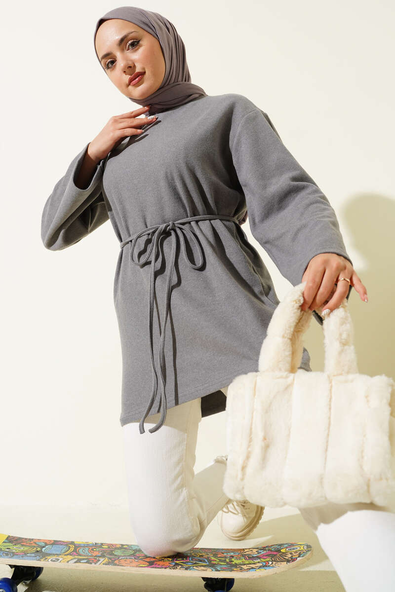 Loyşa Oversize Tunik İkili Takım Füme