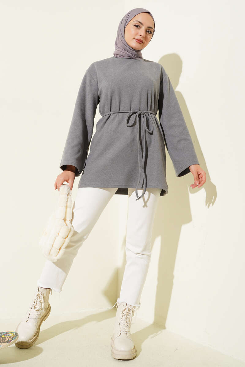 Kol Bağcık Detaylı Triko Tunik Taş