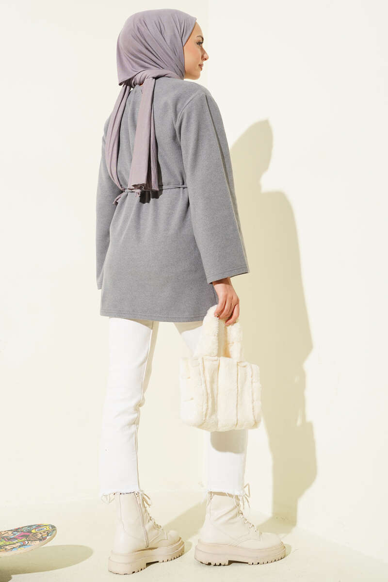 Loyşa Çapraz Dikiş Detaylı Takım Gri