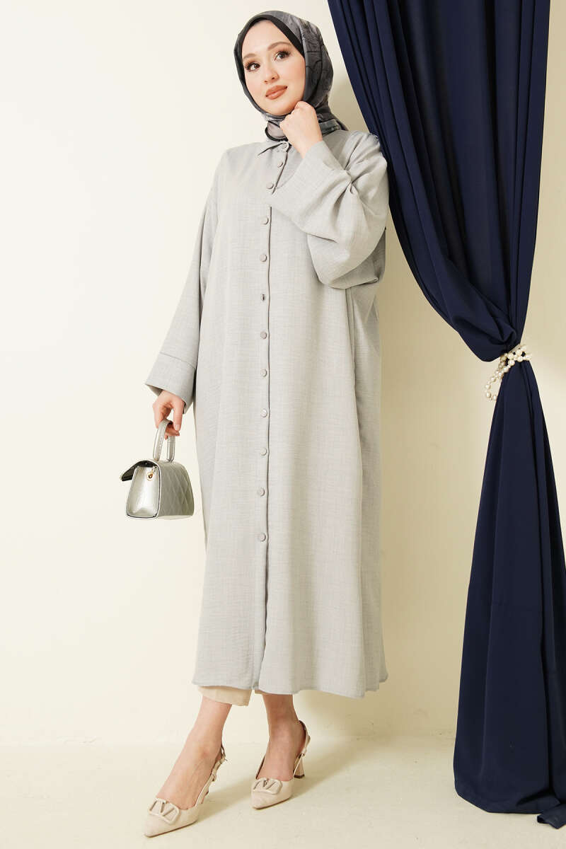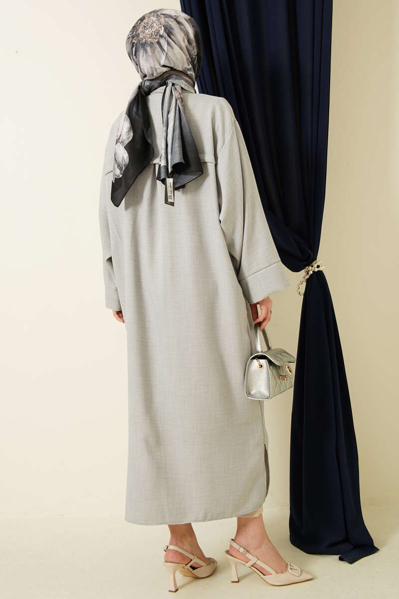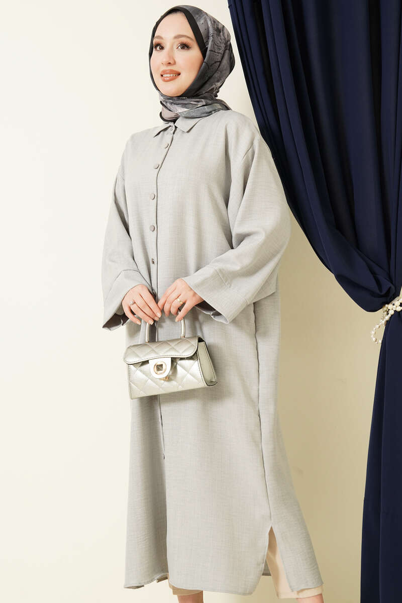 Geniş Kollu Oversize Uzun Gömlek Gri