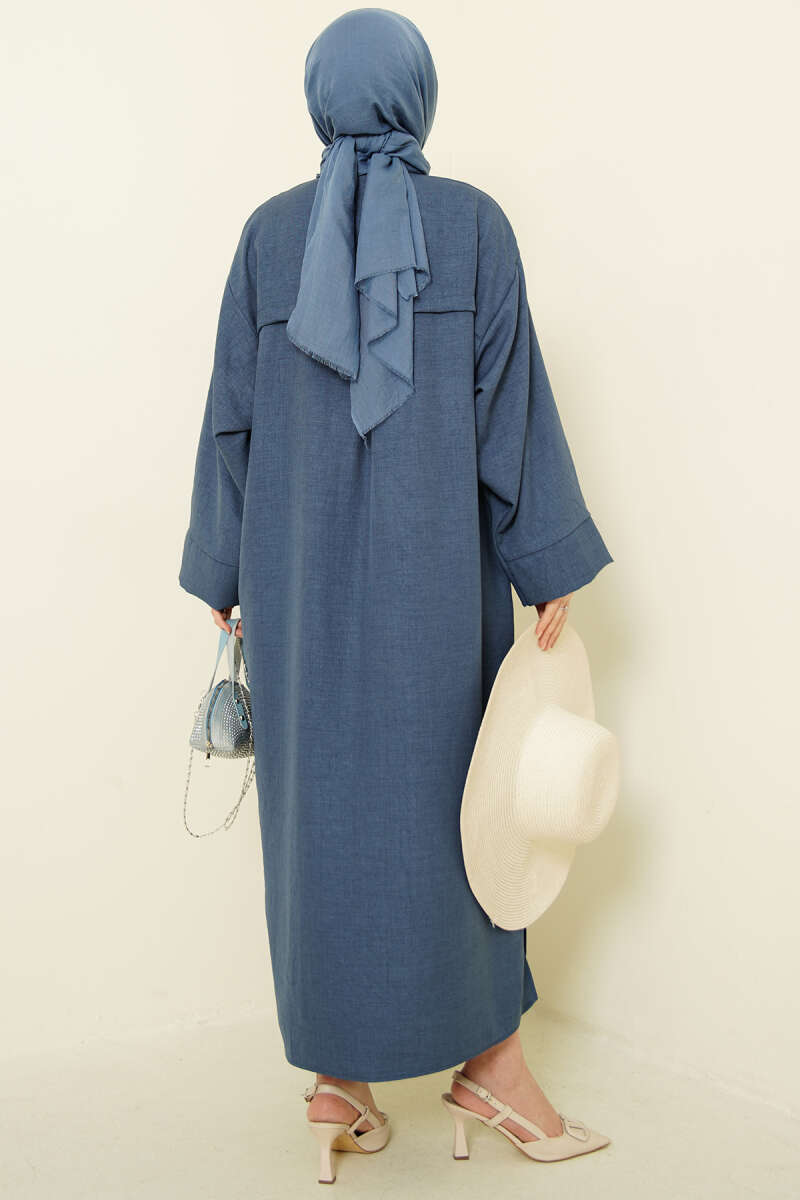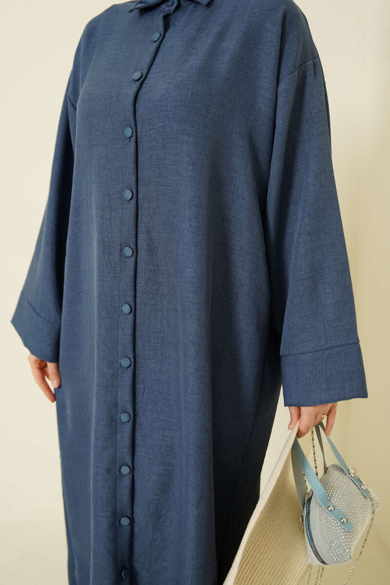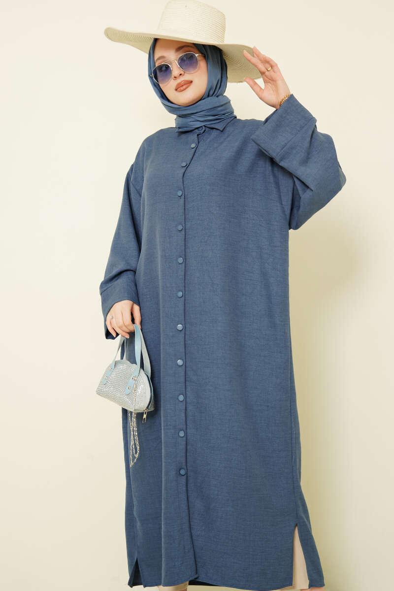 Geniş Kollu Oversize Uzun Gömlek İndigo