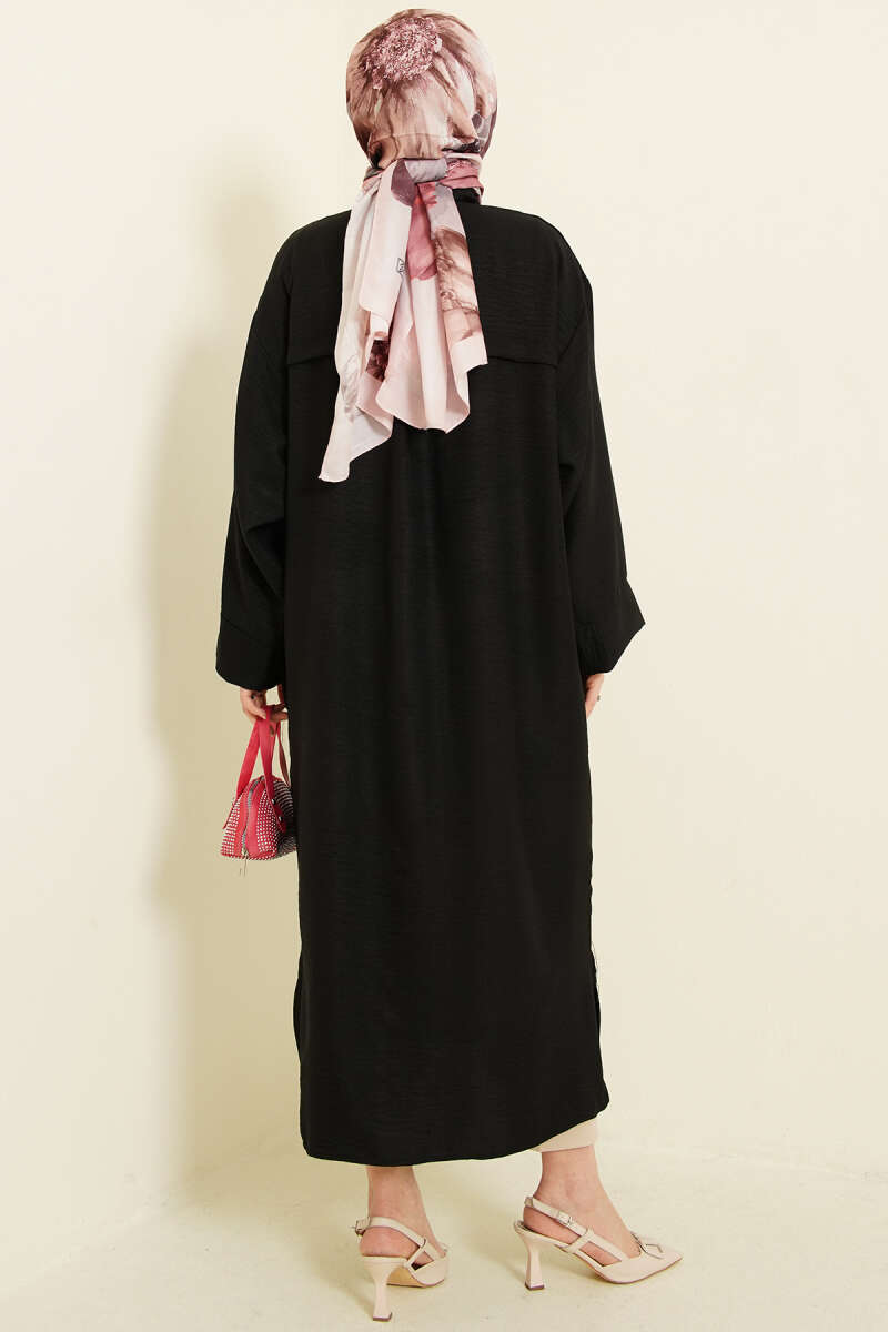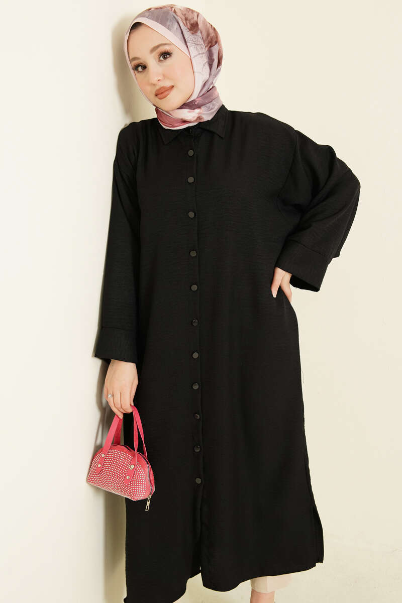 Geniş Kollu Oversize Uzun Gömlek Siyah