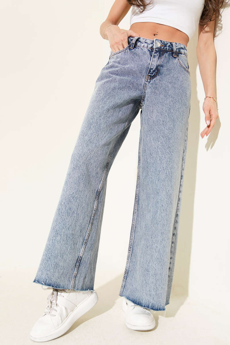 Geniş Lazer Kesim Paçalı Kot Pantolon Kot Mavisi