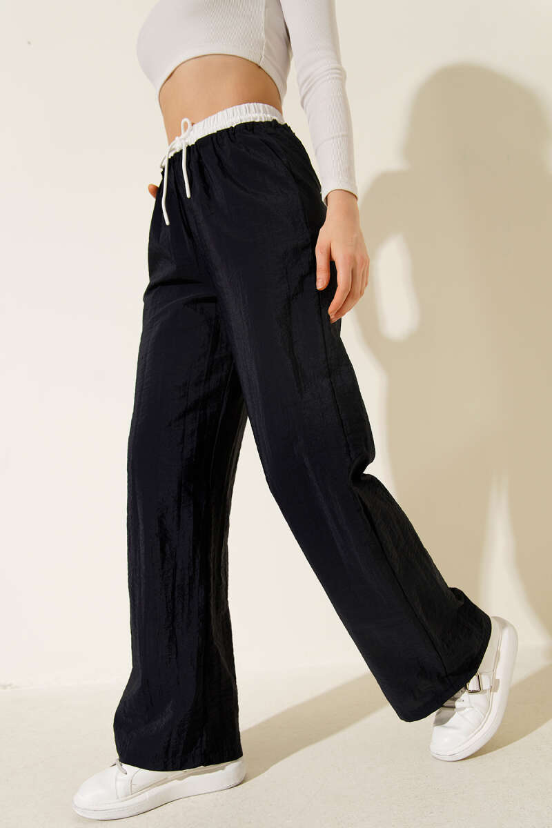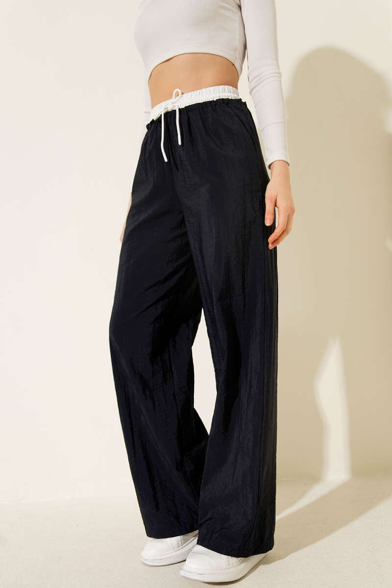 Geniş Paça Bel Garnili Pantolon Lacivert