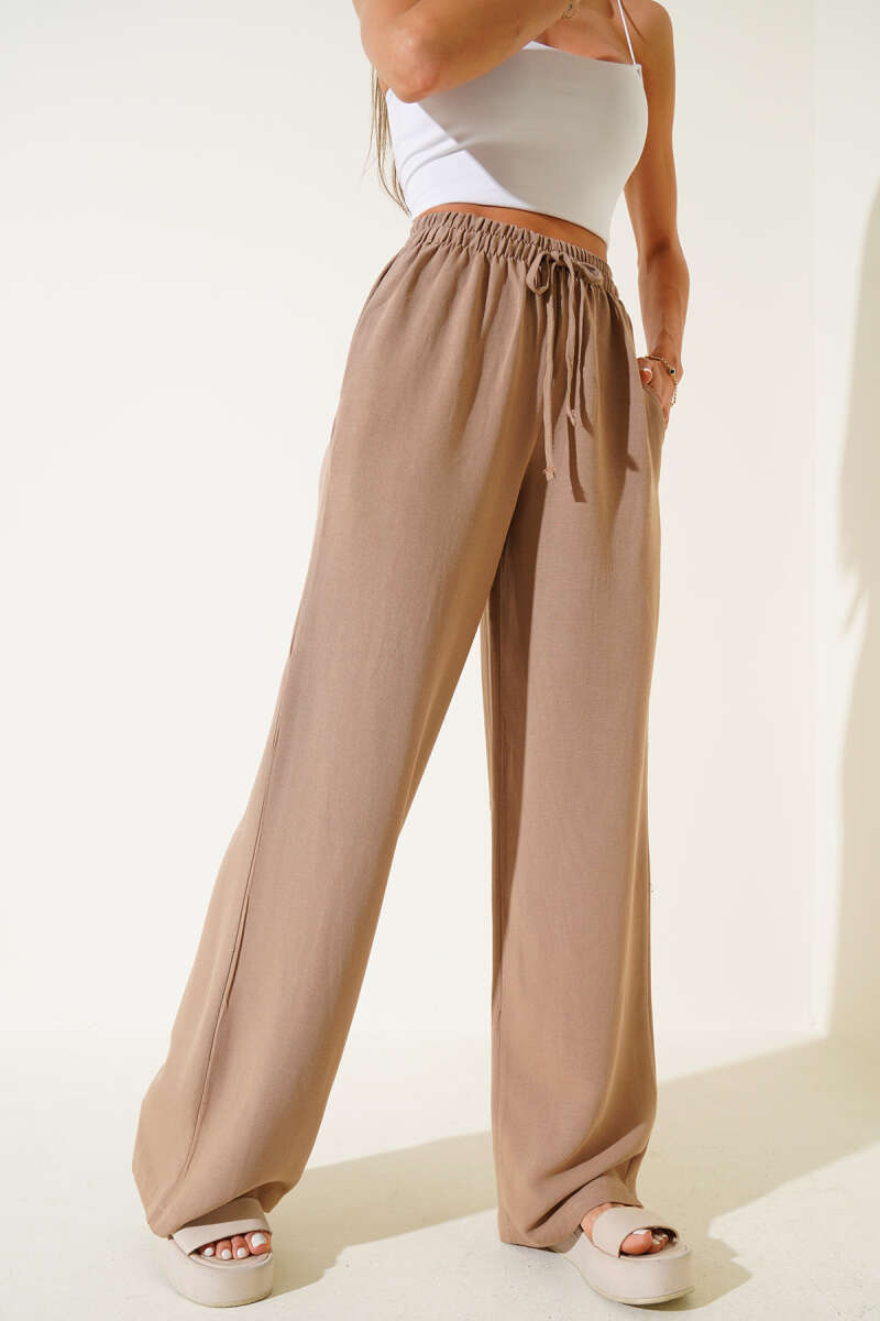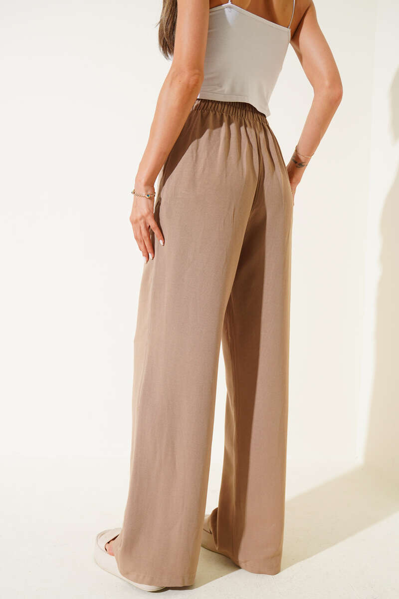 Geniş Paça Keten Pantolon Vizon