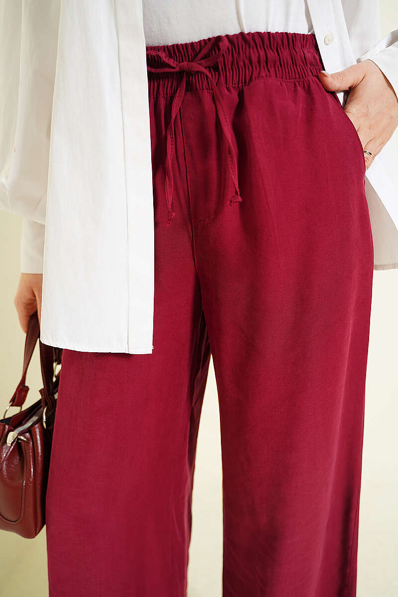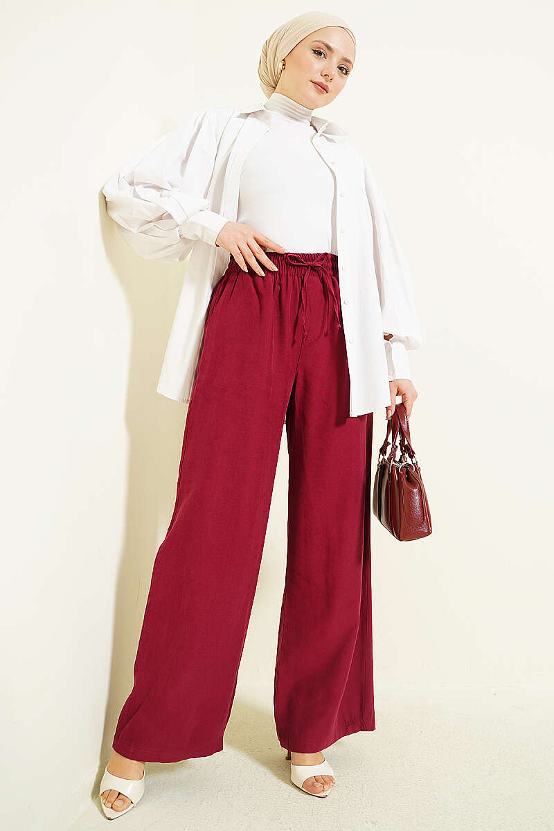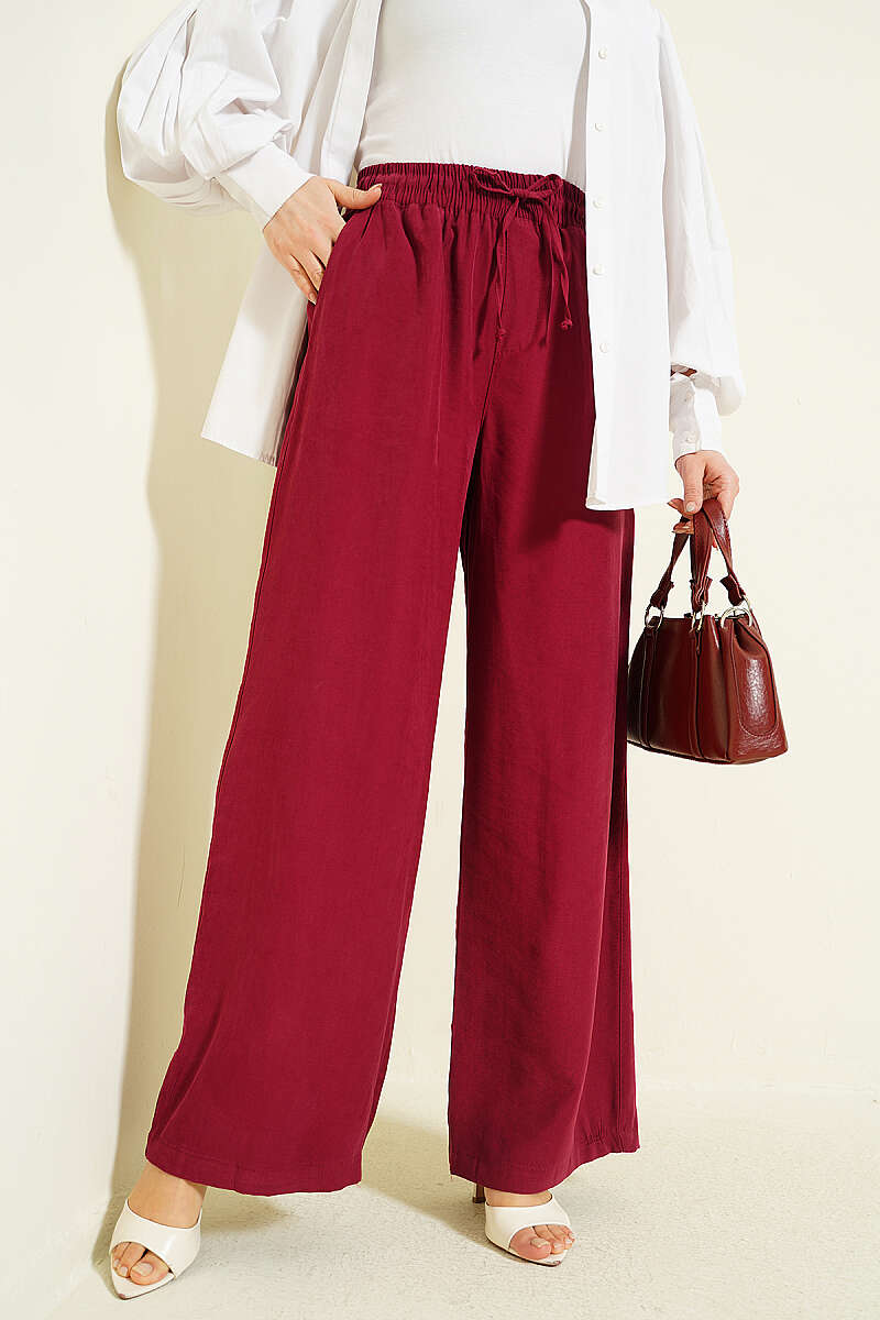 Geniş Paça Lastikli Tensel Pantolon Bordo