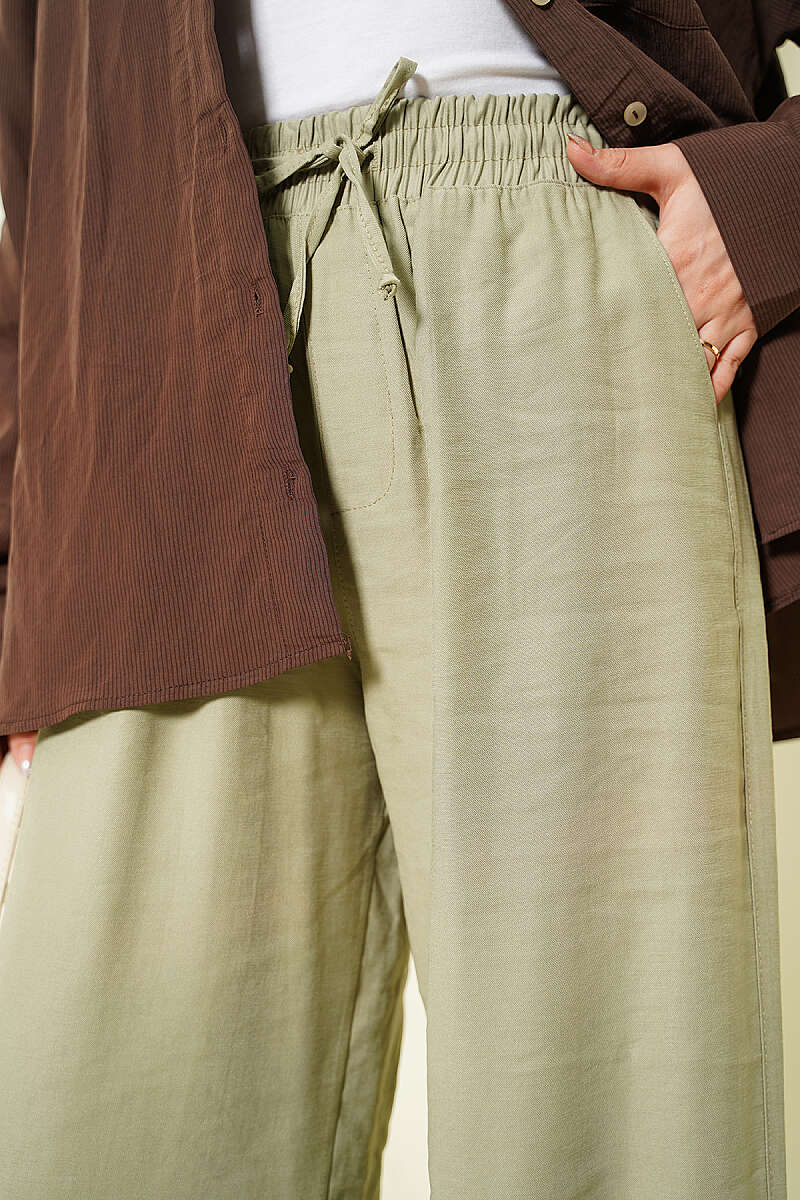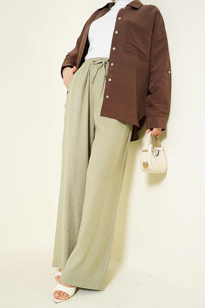 Geniş Paça Lastikli Tensel Pantolon Çağla Yeşili